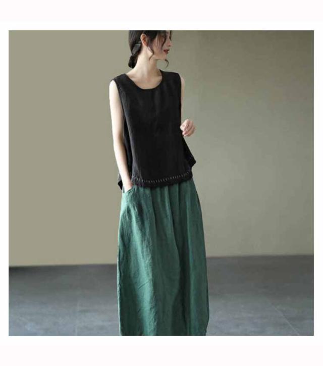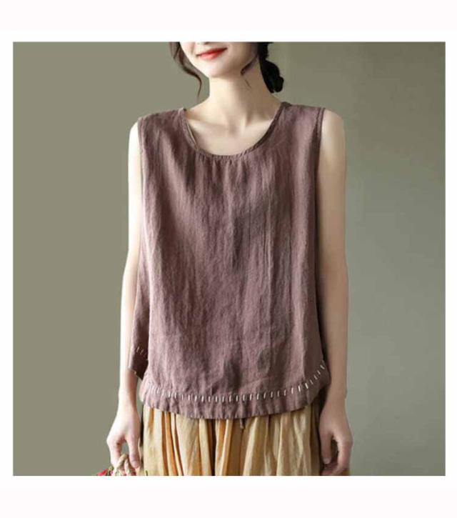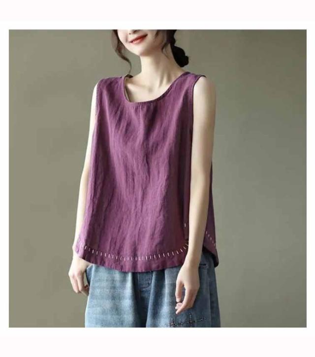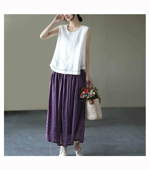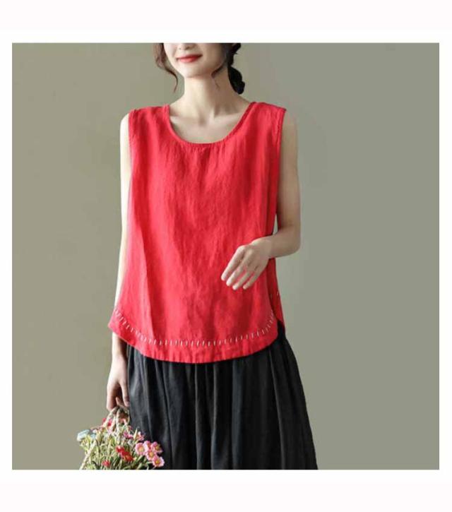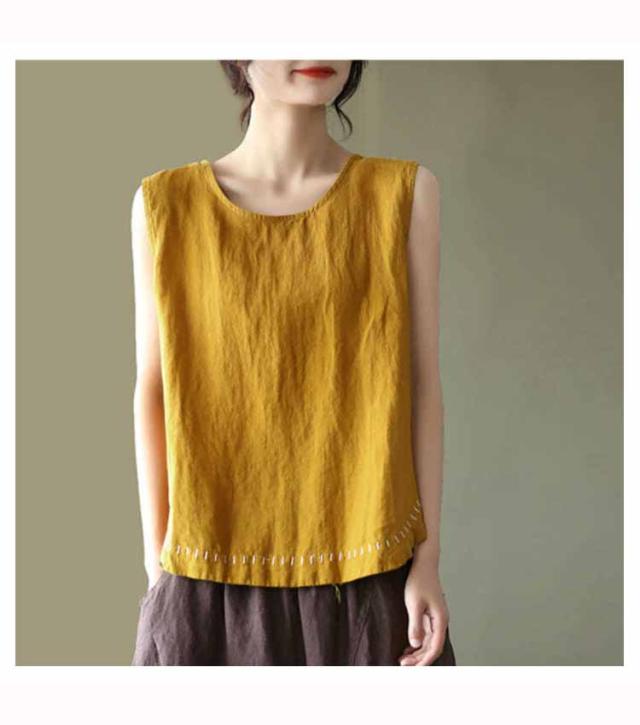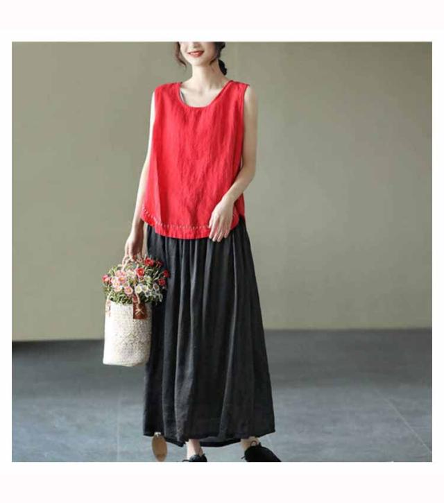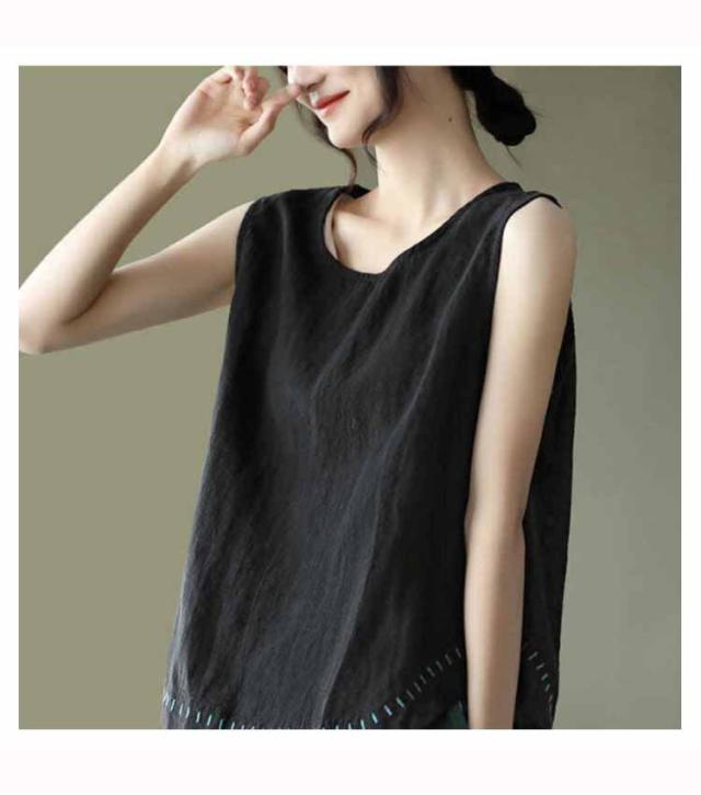 タンクトップ 綿100 レディース ラウンドネック ロング丈 カジュアル カバー ロングタンクトップ 刺? ナチュラル ブラウン イエロー ブラック ホワイト レッド パープル 送料無料
