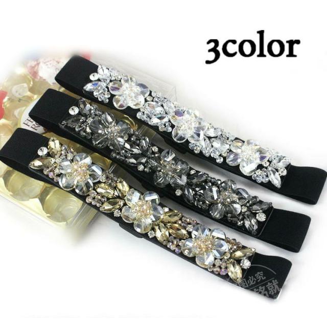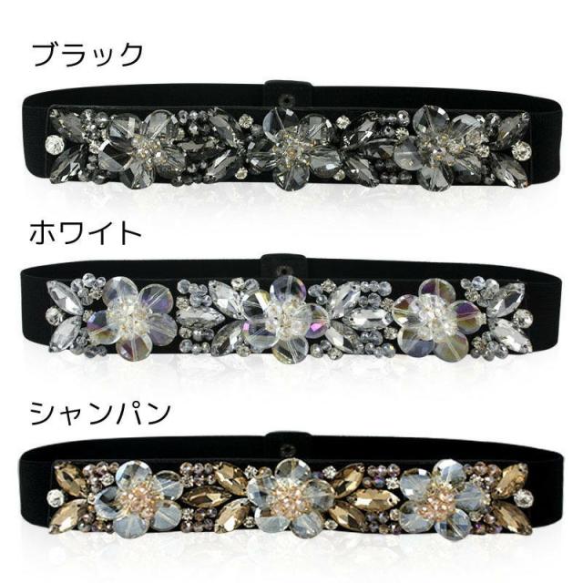 ベルト レディース ファッション小物 服飾雑貨 ラインストーン ビジュー ビーズ フラワー スナップ 華やか キラキラ おしゃれ かわいい ブラック