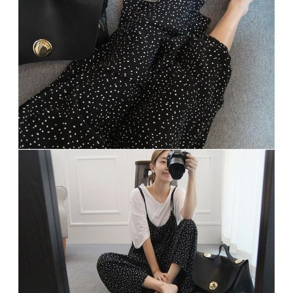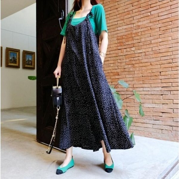 ガウチョパンツ ワンピース ロング KL オーバーオール ワイトパンツ マキシワンピース レディース 水玉 マキシ丈 新作 薄手 着痩