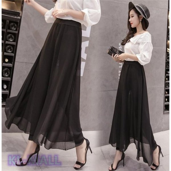 ワイドパンツ レディース シフォン KL ガウチョパンツ 春 夏 ジョガーパンツ スカートタイプ カジュアル イージーパンツ 2019