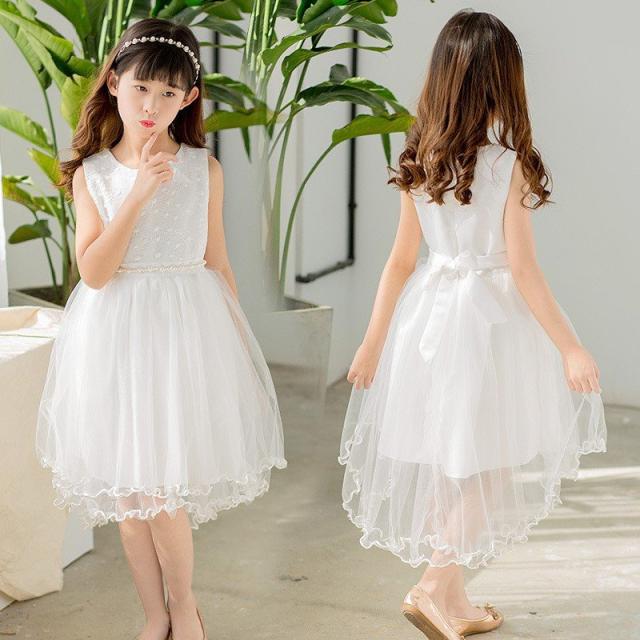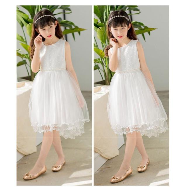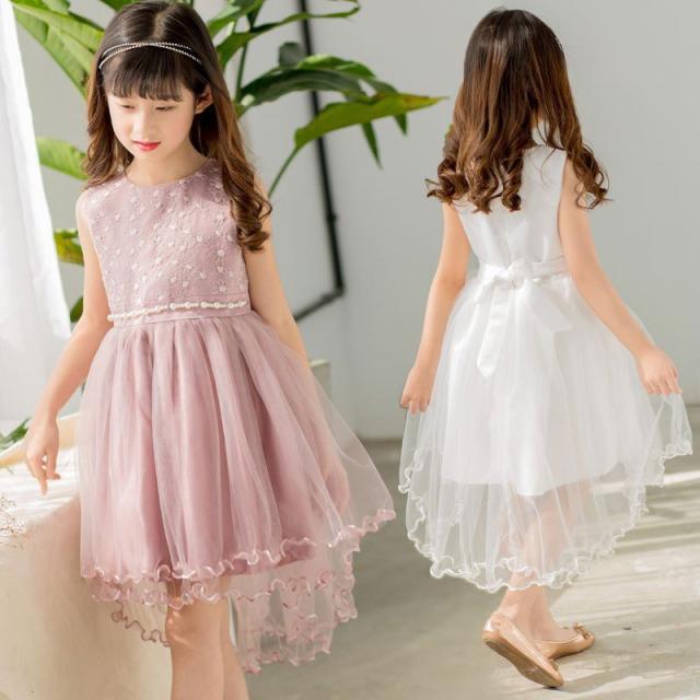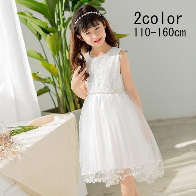 ドレス ワンピース 子供用 キッズ 女の子 ガール ノースリーブ 花 レース チュールスカート フリル 上品 清楚 エレガント 発表会 結婚式 かわい
