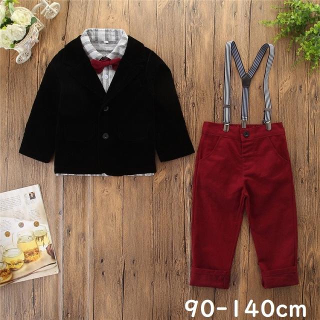 スーツ セットアップ キッズ 男の子 子供用 ジャケット シャツ ロングパンツ 3点セット 長袖 長ズボン サスペンダー 蝶ネクタイ付き トップス 結