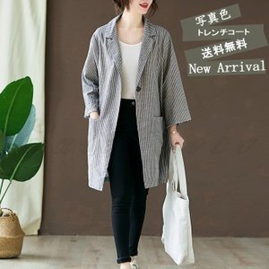 トレンチコート レディース 九分袖 ストライプ柄 テーラードジャケット スーツ ゆったり 春秋 大きいサイズ きれいめ おしゃれ アウター