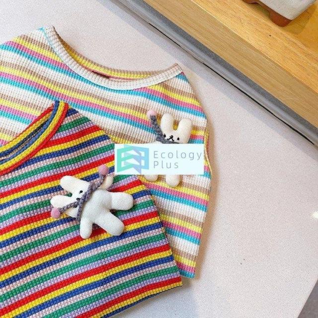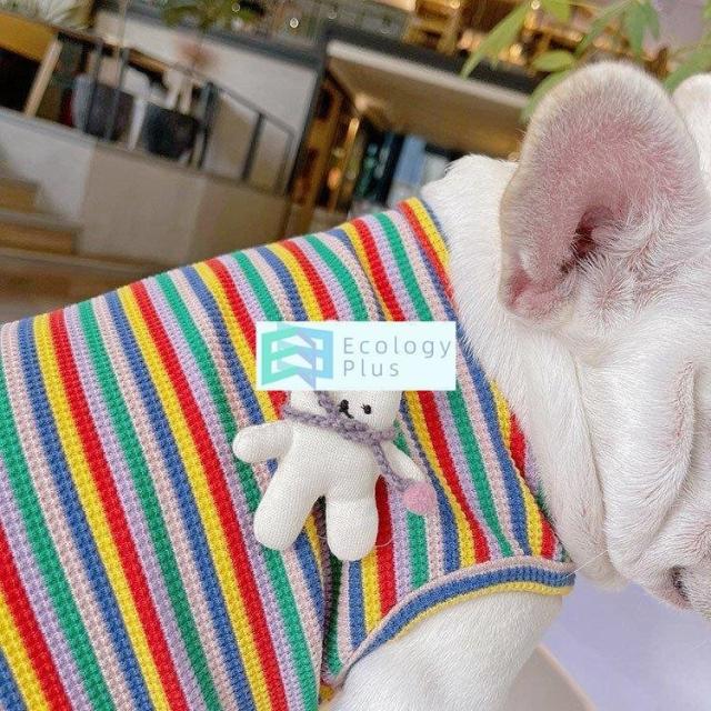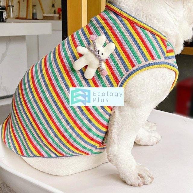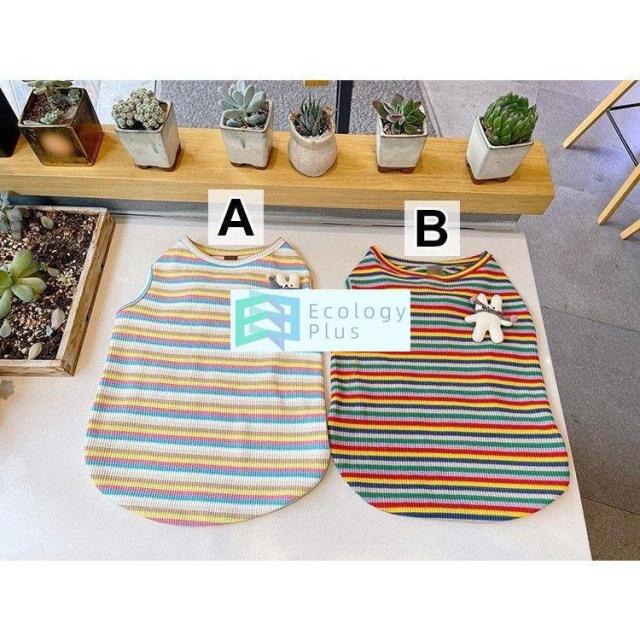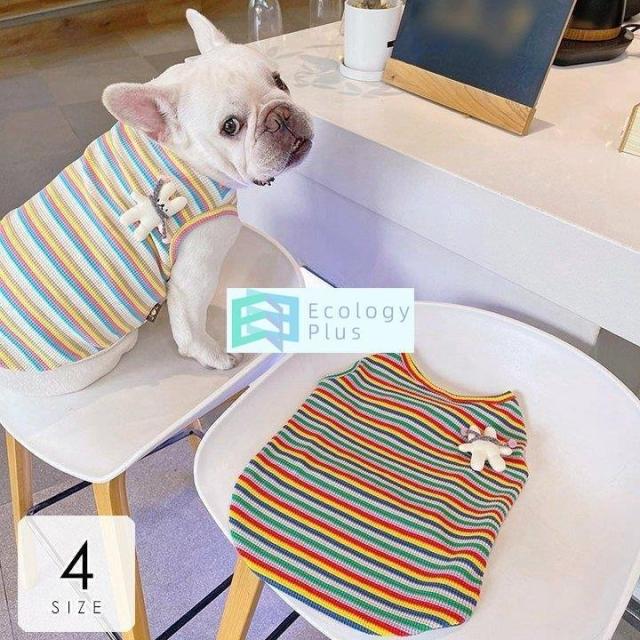 ペット用品 ペットグッズ ペットウエア コスチューム ノースリーブ 袖なし ボーダー カラフル スポーティー ブルー イエロー レッド グリーンきれい