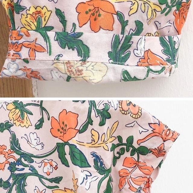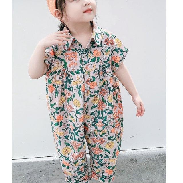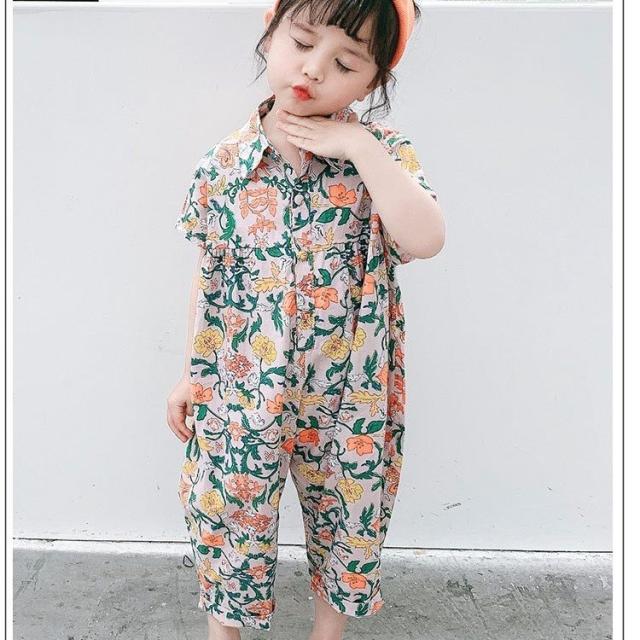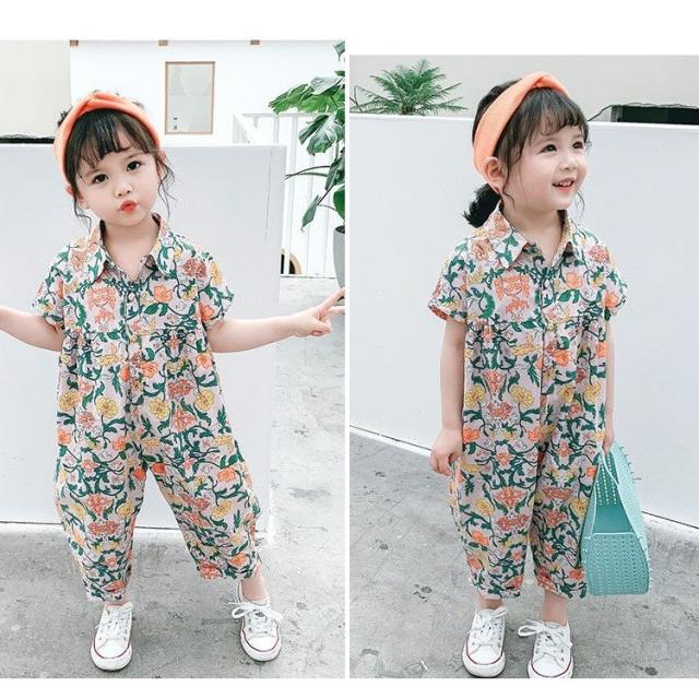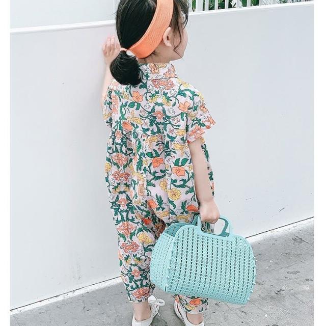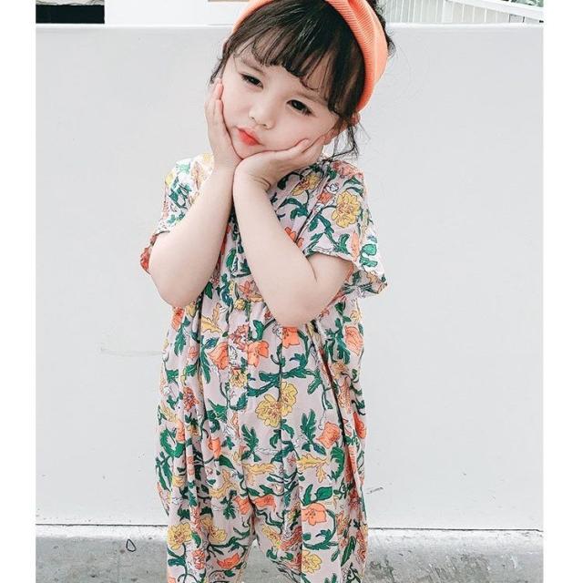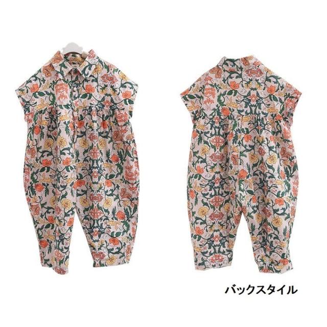 オールインワン キッズ つなぎ 子供用 女の子 半袖 ロングパンツ ジャンプスーツ 花柄 フラワー かわいい おしゃれ 春夏
