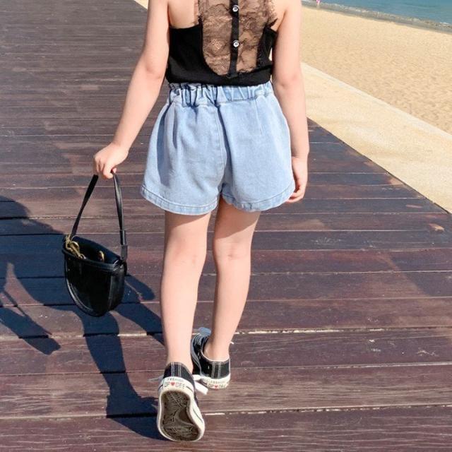 ショートパンツ 半ズボン 短パン デニム ジーンズ キッズ ベビー ジュニア 子供 女の子 男の子 無地 単色 シンプル ウエストゴム カジュアル お