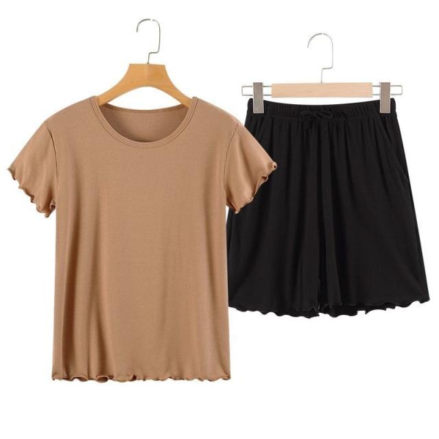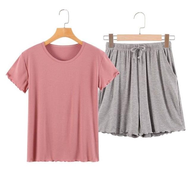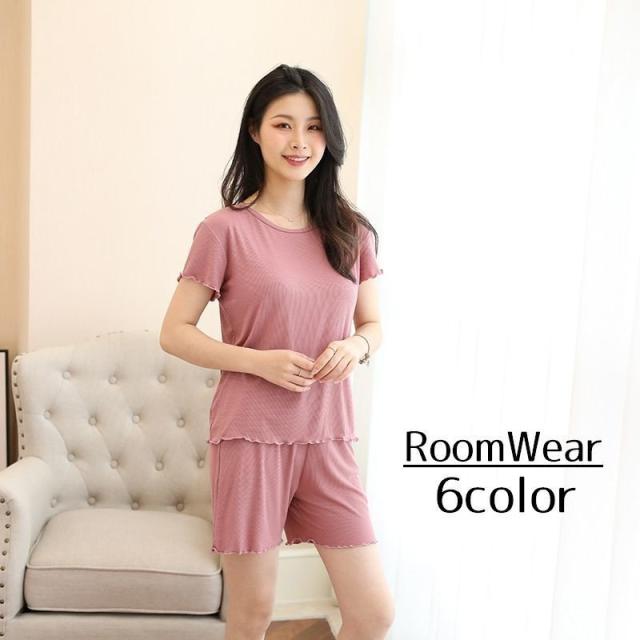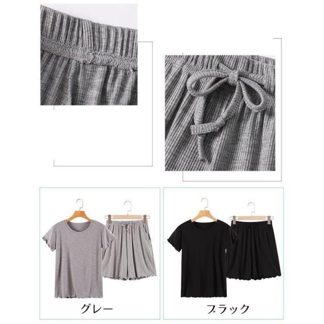 ルームウェア セットアップ 部屋着 パジャマ レディース シンプル 上下セット 夏服 2点セット プルオーバー カットソー 半袖 ショートパンツ 袖フ