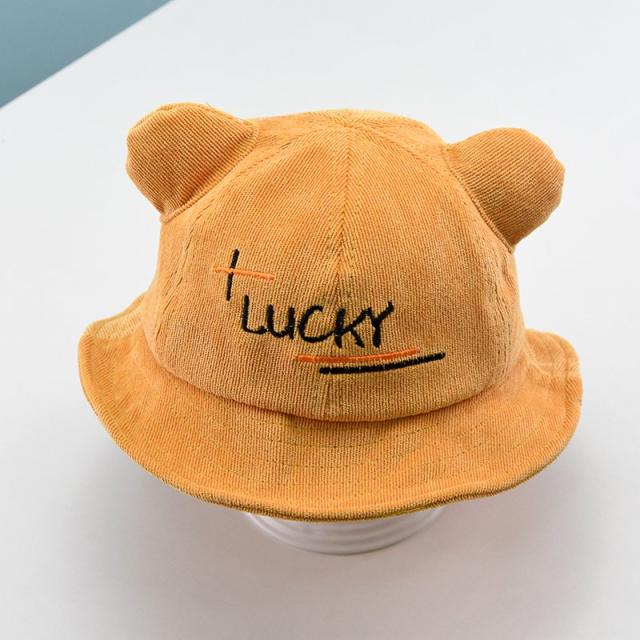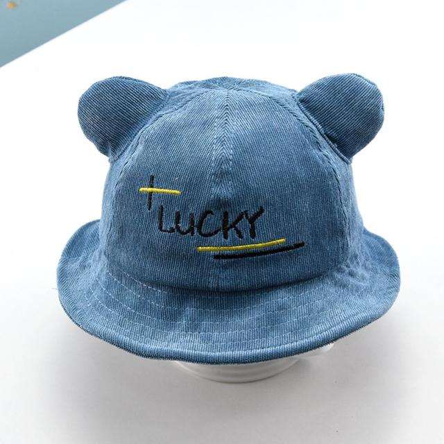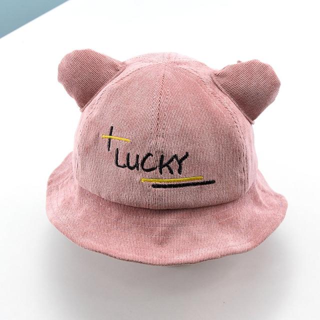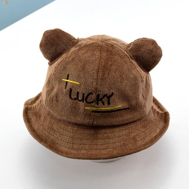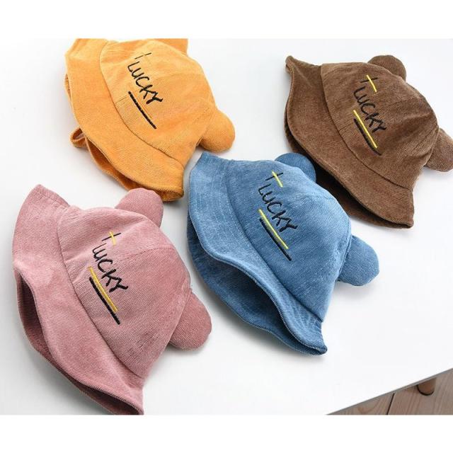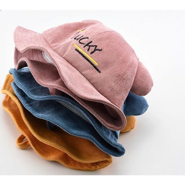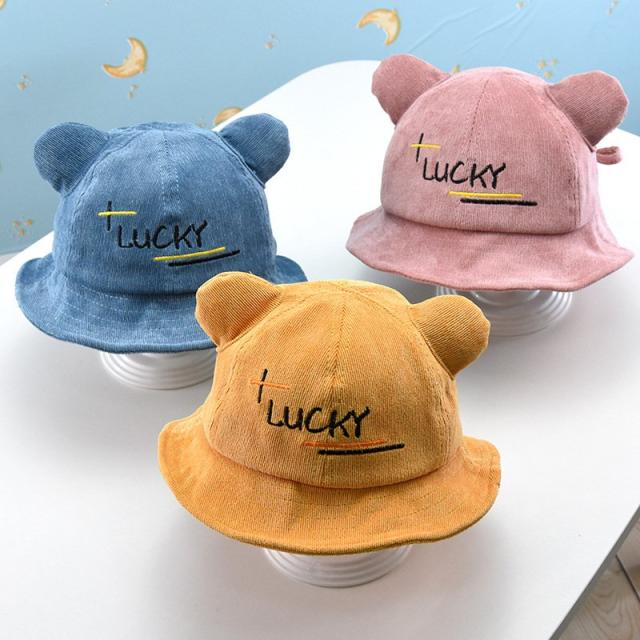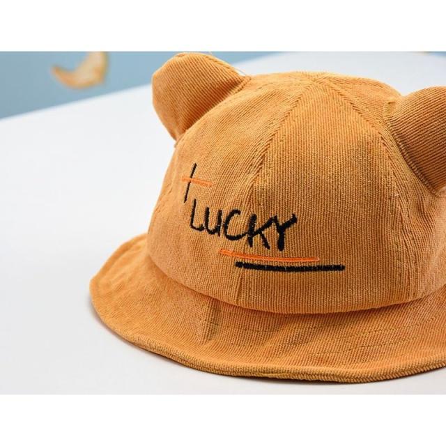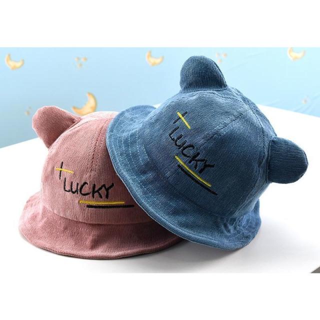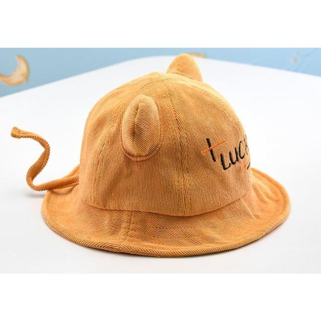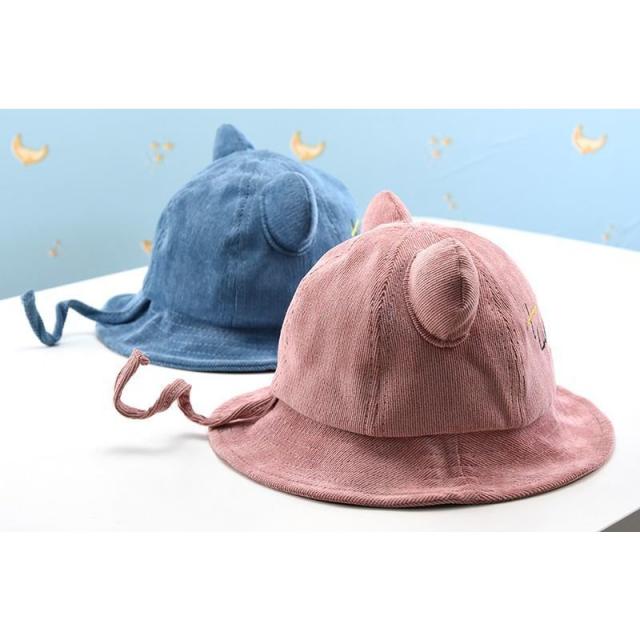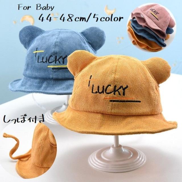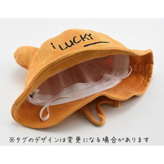 帽子 クルーハット メトロハット ベビー キッズ 赤ちゃん 子ども 男の子 女の子 コーデュロイ 英字 ロゴ 耳付き ゴム付き 刺繍 日よけ しっぽ付