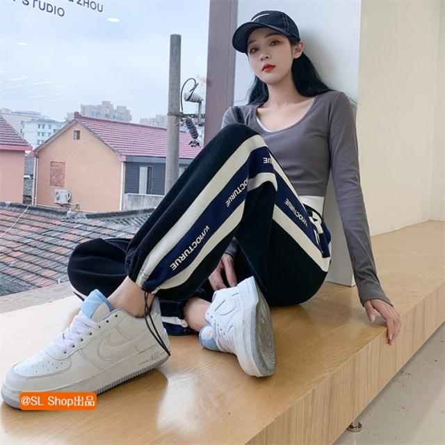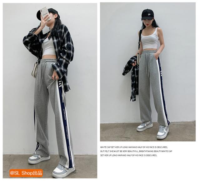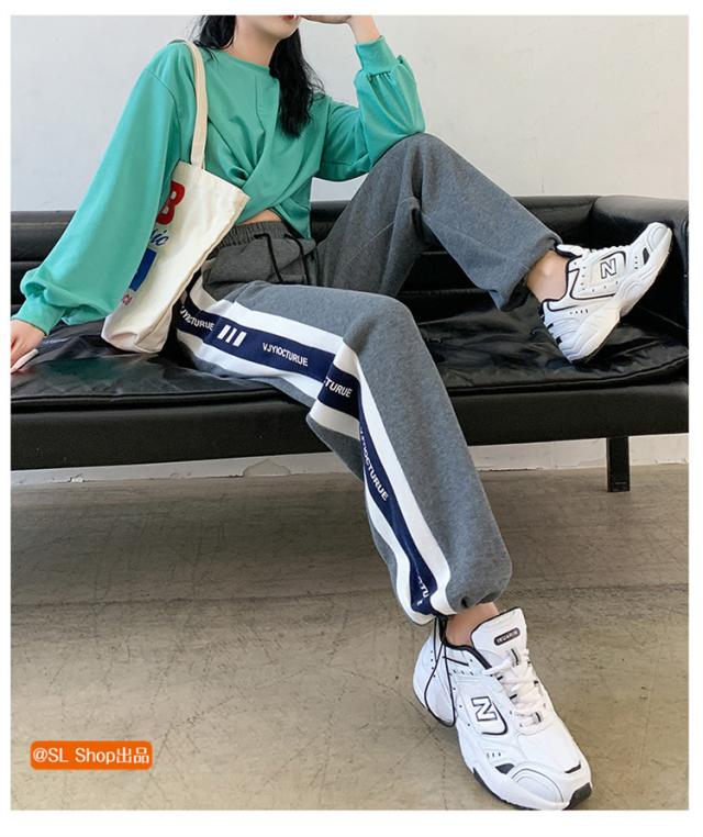 ジャージ 下 レディース ドローストリングパンツ ジャージパンツ 切り替え カジュアル 部屋着 英字柄 秋