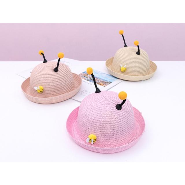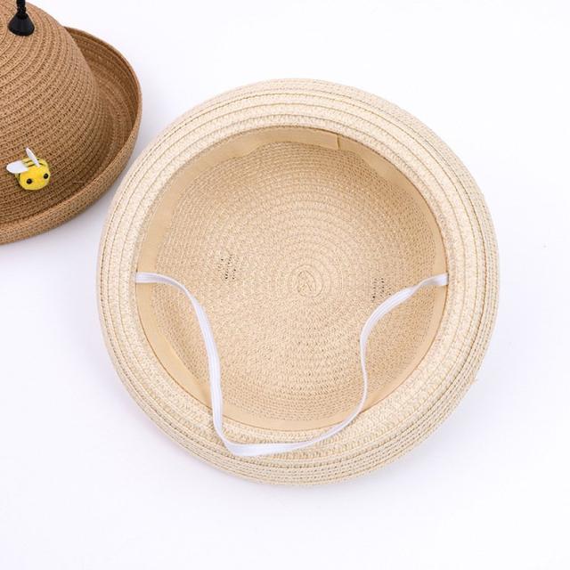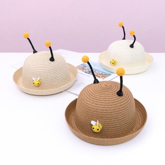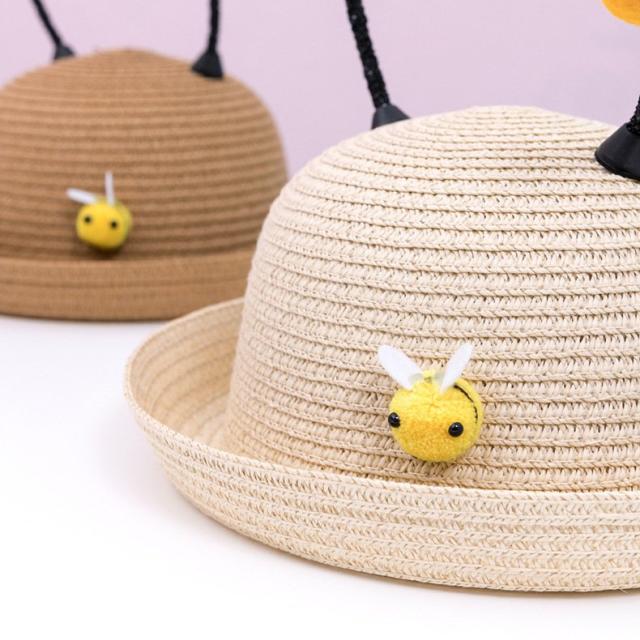 ハット 帽子 キッズ帽子 ベビー帽子 ベビー 赤ちゃん 女の子 男の子 麦わら帽子 ストローハット ペーパー ハチ ツノ メッシュ 通気性 涼しい つ