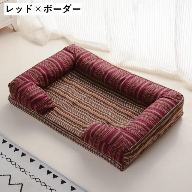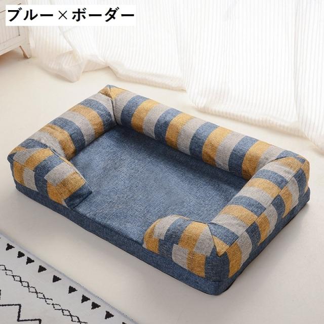 ペットベッド 犬用 猫用 ドッグ キャット カドラー ソファー マット クッション 寝具 寝床 室内 背もたれ カバー取り外し可能 長方形 シンプル