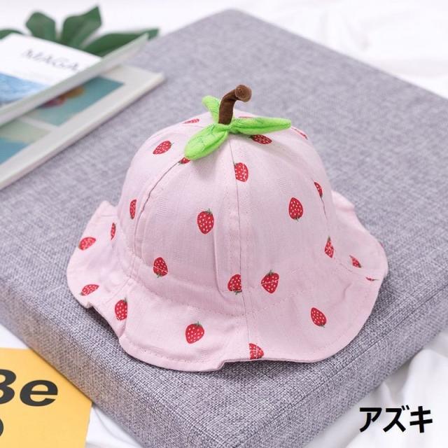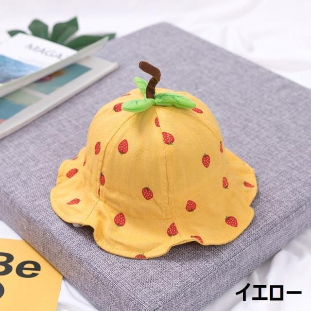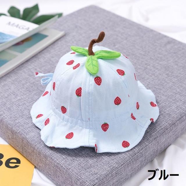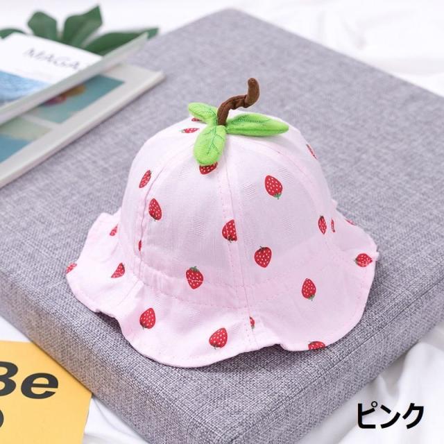 ベビーハット つば広帽子 チューリップハット 子供用 ベビー キッズ いちご あご紐付き 48cm 日よけ 熱中症対策 お出かけ