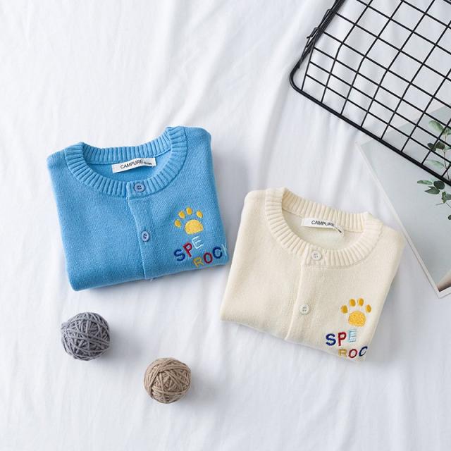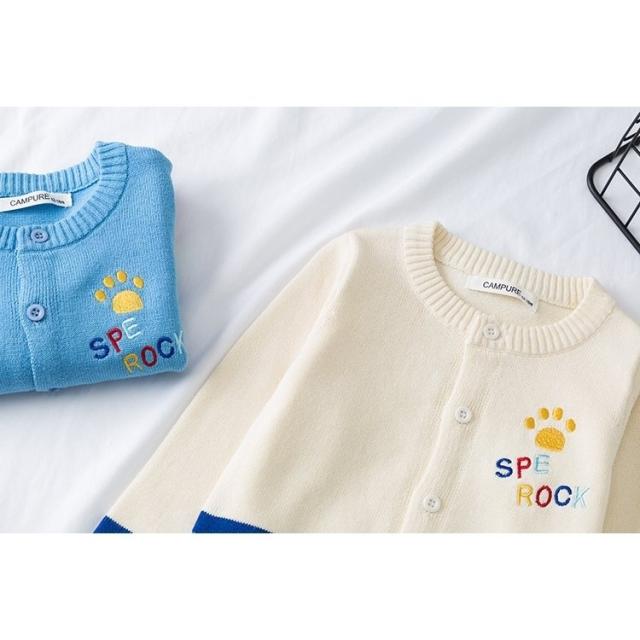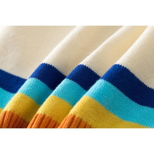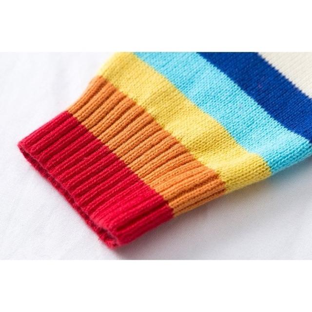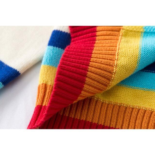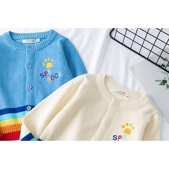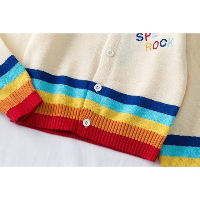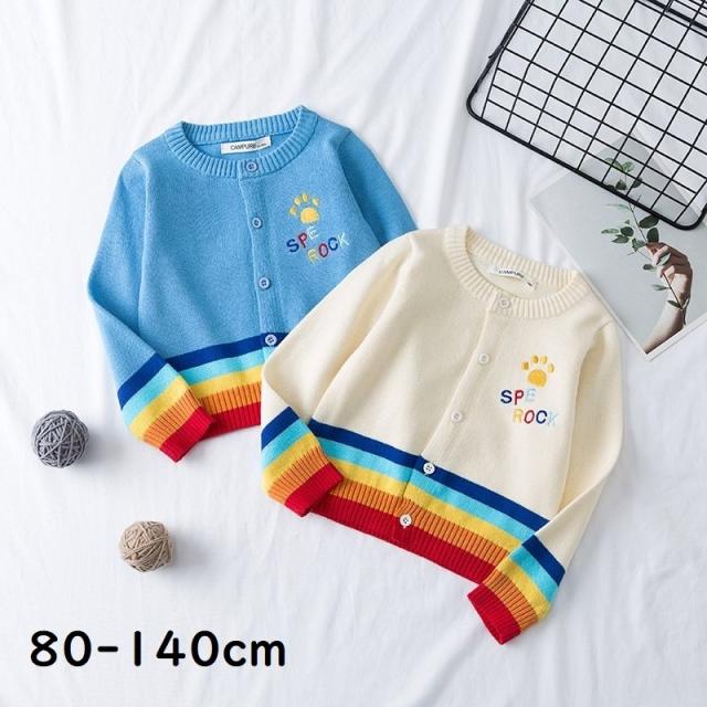 カーディガン キッズ ベビー 女の子 子供用 長袖 トップス ニット クルーネック ロゴ レインボー 羽織り かわいい おしゃれ 通園 通学 あたたか