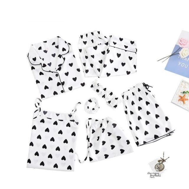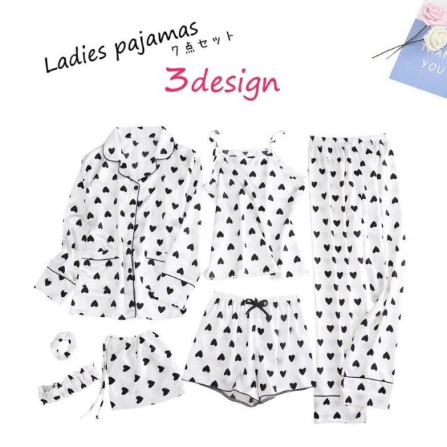 パジャマ ルームウェア 上下セット 7点セット レディース 女性 トップス ボトムス 長袖 ロングパンツ キャミソール ショートパンツ アイマスク ヘ