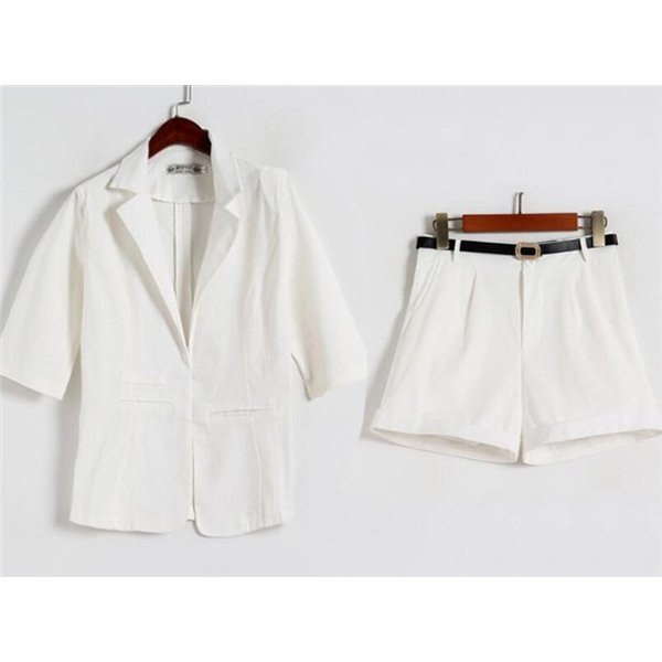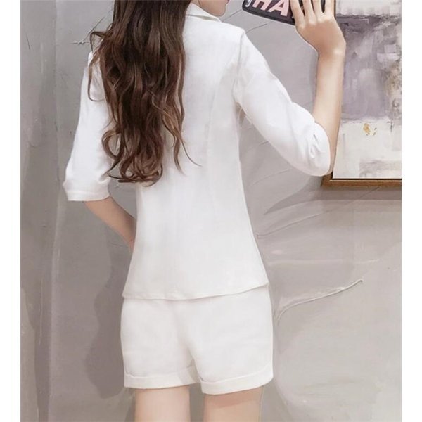 セットアップレディースフォーマルカジュアルスーツ 綿麻オフィスオシャレスーツセットショートパンツ 結婚式キレイめ 着痩せ通勤夏洋服