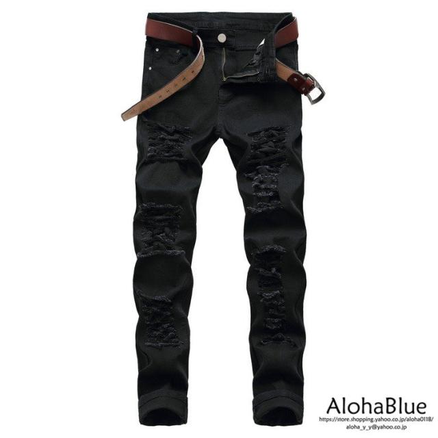 スキニーパンツ メンズ ダメージ加工 ジーンズ ブラック スキニーデニム スリムパンツ デニム パンツ 春服 春物 カッコイイ