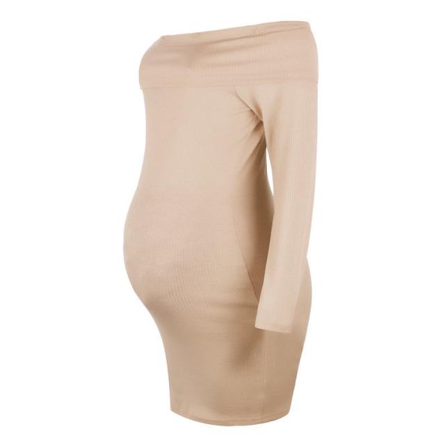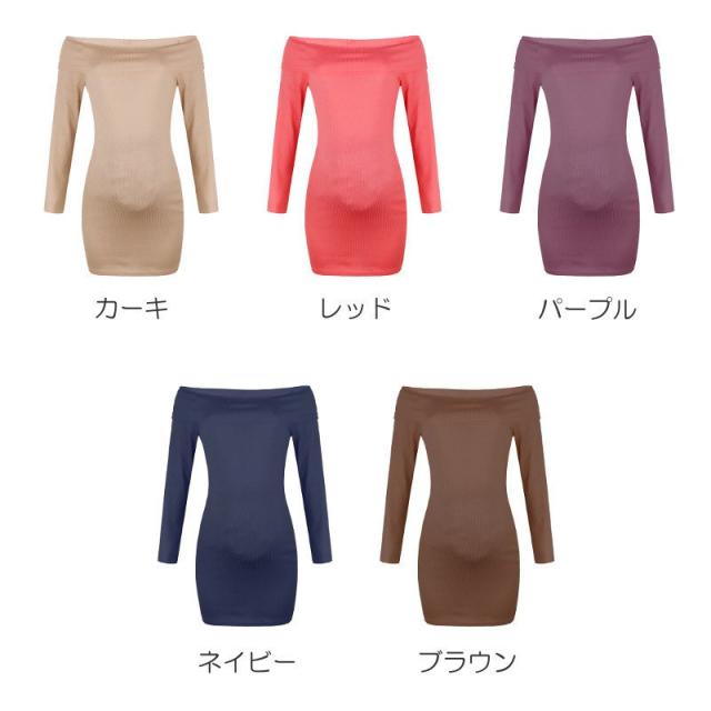 ワンピース マタニティ 妊婦 ママ タイトワンピ ニット レディース ミニワンピ ミニ丈 チュニック オフショルダー 長袖 リブ セクシー おしゃれ