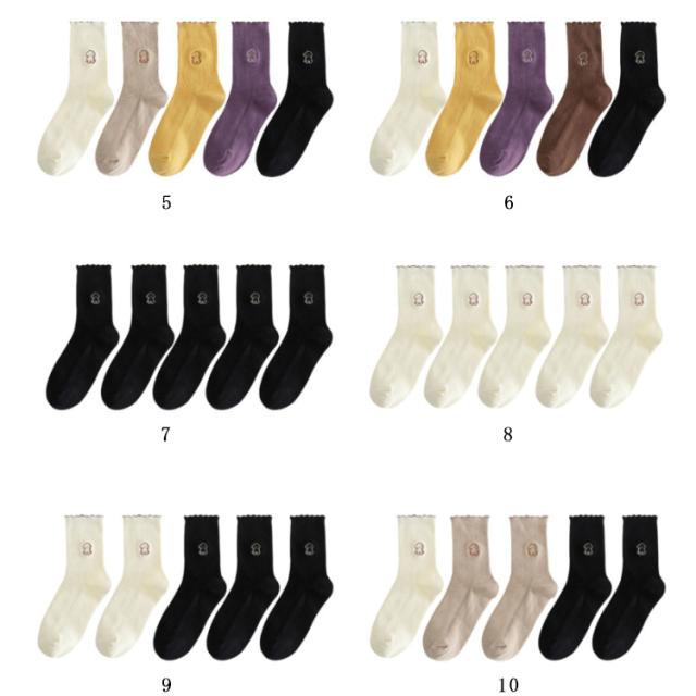 靴下 フリル ソックス 5足セット レディース フリルソックス リブ編み ソックス セット クルーソックス 送料無料 ストレッチ くつした 刺? 大人 可愛い おしゃれ 通勤 普段着 春夏 秋冬 プレゼント