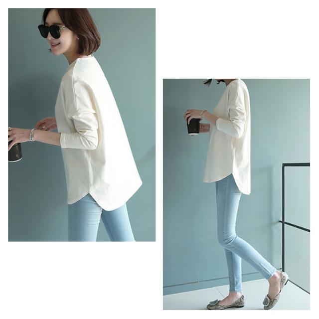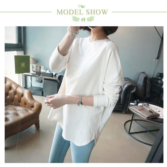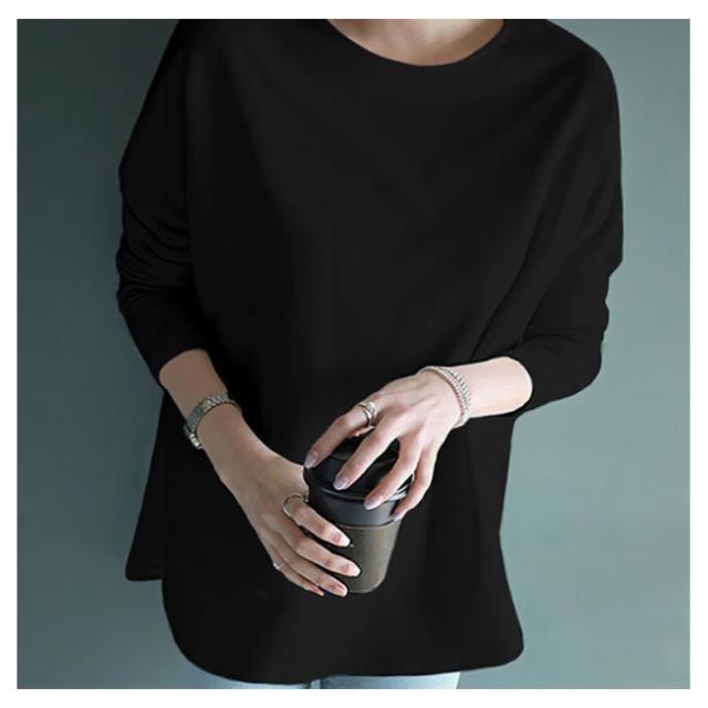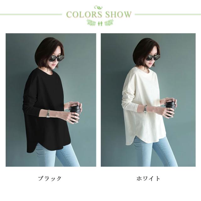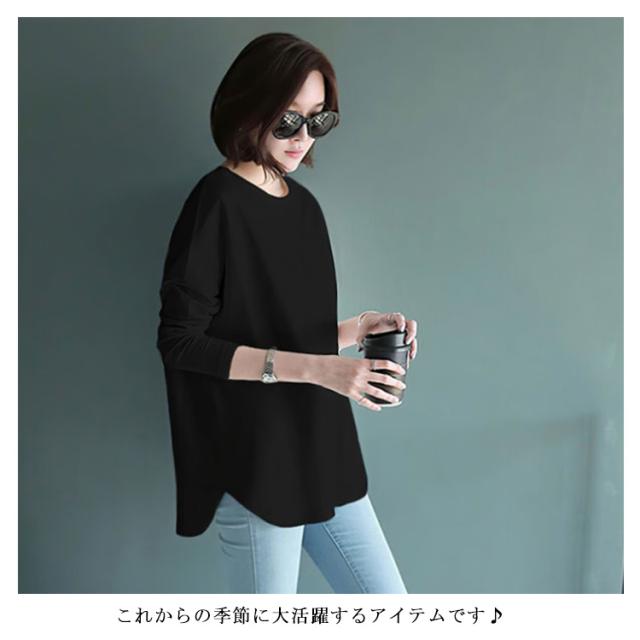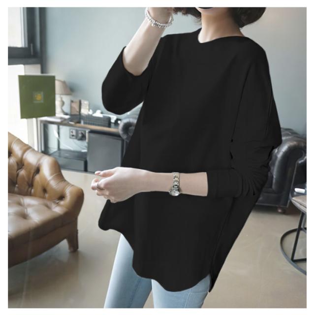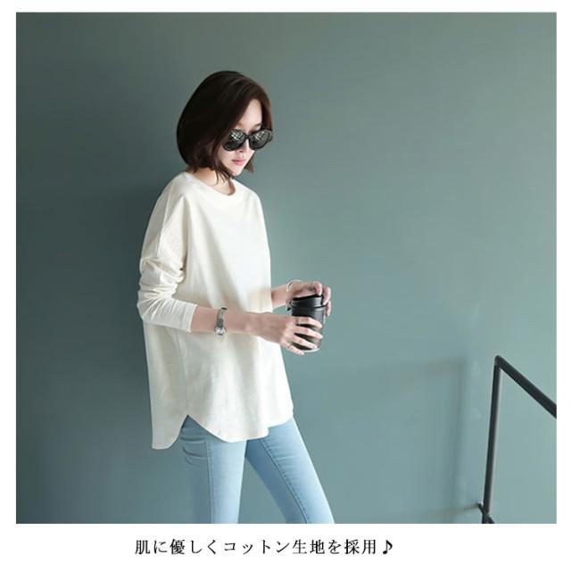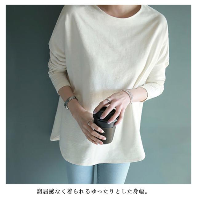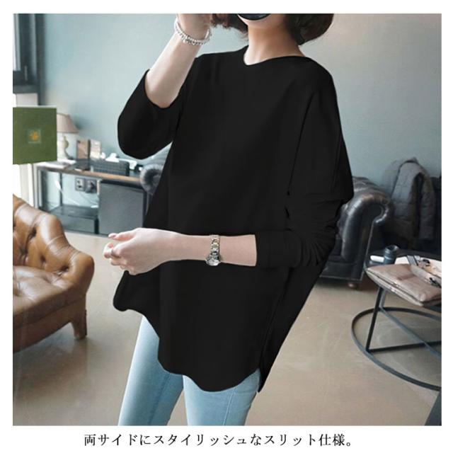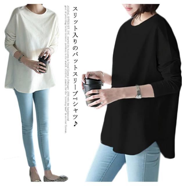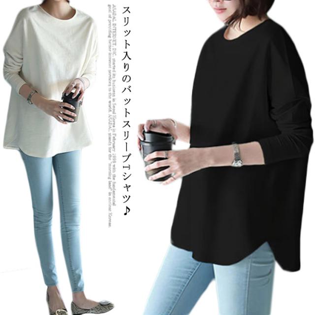 長袖 tシャツ レディース トップス カットソー 無地 ロングtシャツ インナーTシャツ コウモリ袖 バットスリーブ 綿 コットン スリット入り ゆったり 体型カバー シンプル おしゃれ エレガント 春秋 送料無料 通勤 通学 オフェンス OL
