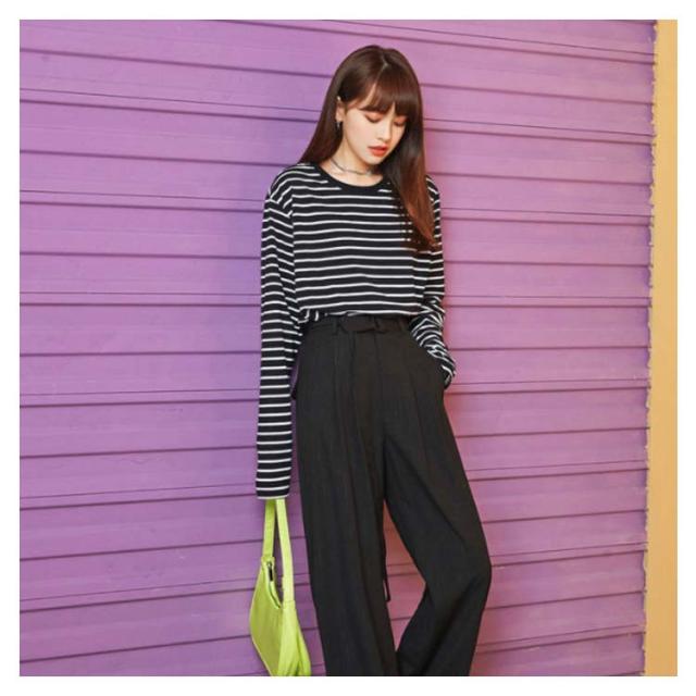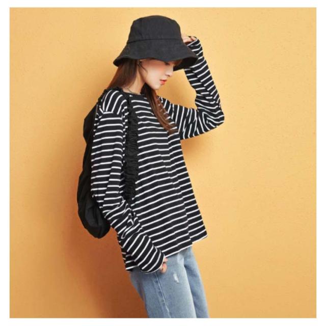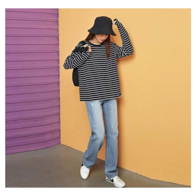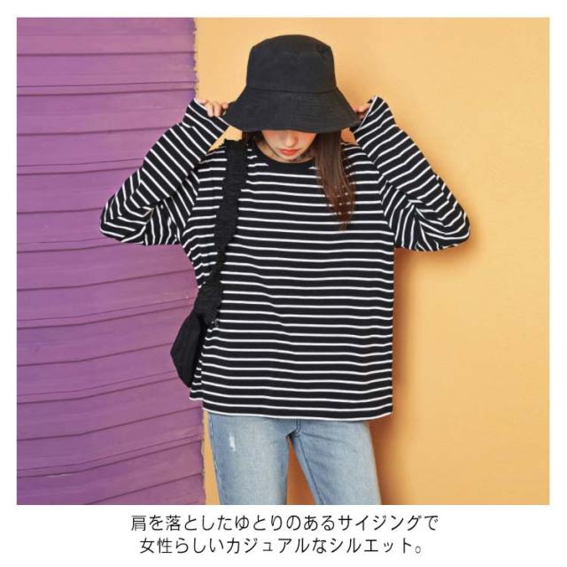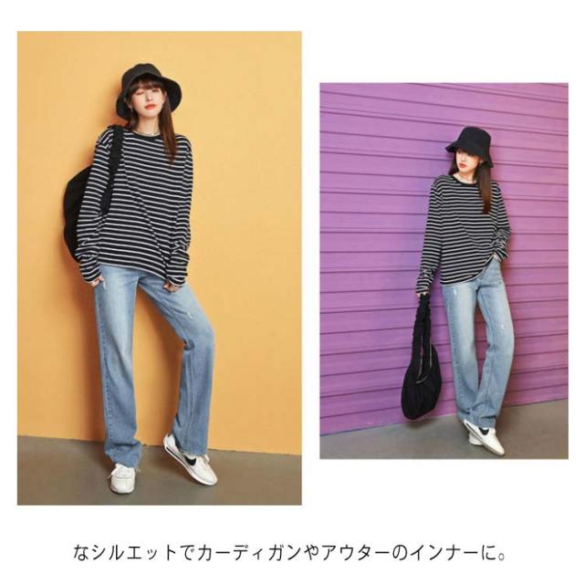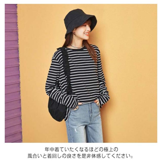 トップス ブラウス tシャツ カットソーコットン 送料無料 長袖 Tシャツ シンプル ボーダー トップス レディース クルーネック ロンT 秋 カジュアル 綿