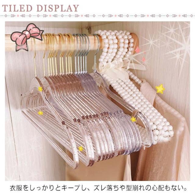 ハンガー おしゃれ 10本組 収納ハンガー 型崩れ防止 跡がつかない きらきら 半透明 アクリル 洗濯 物干しハンガー 乾湿両用 新生活?インテリア 高級 美しい 多機能 スリム キャミソール