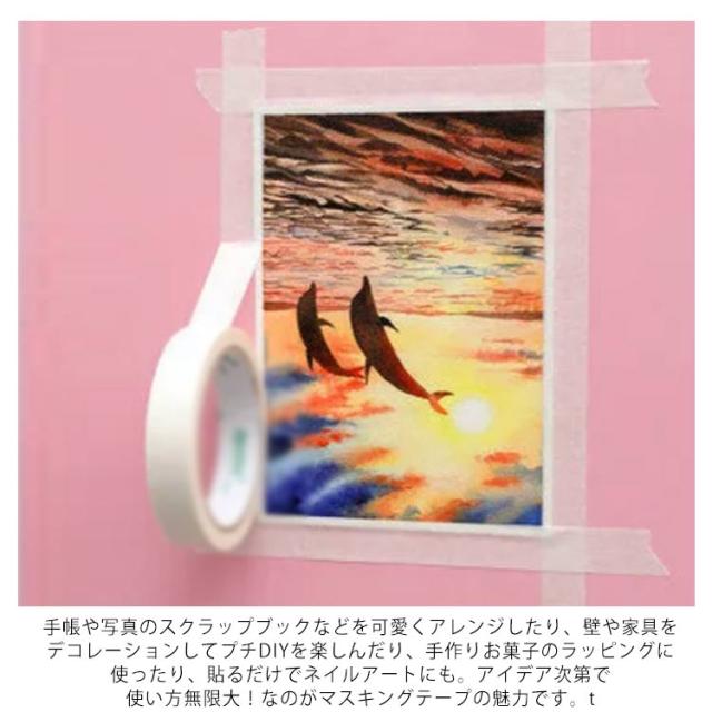 | 真っ白のマスキングテープです。 簡単に貼れてきれいにはがせるので、いろんなところに貼って楽しんじゃおう! 手帳や写真のスクラップブックなどを可愛くアレンジしたり、壁や家具をデコレーションしてプチDIYを楽しんだり、手作りお菓子のラッピングに使ったり、貼るだけでネイルアートにも。アイデア次第で使い方無限大!なのがマスキングテープの魅力です。 10本入なのでたっぷりお使いいただけます。 | |