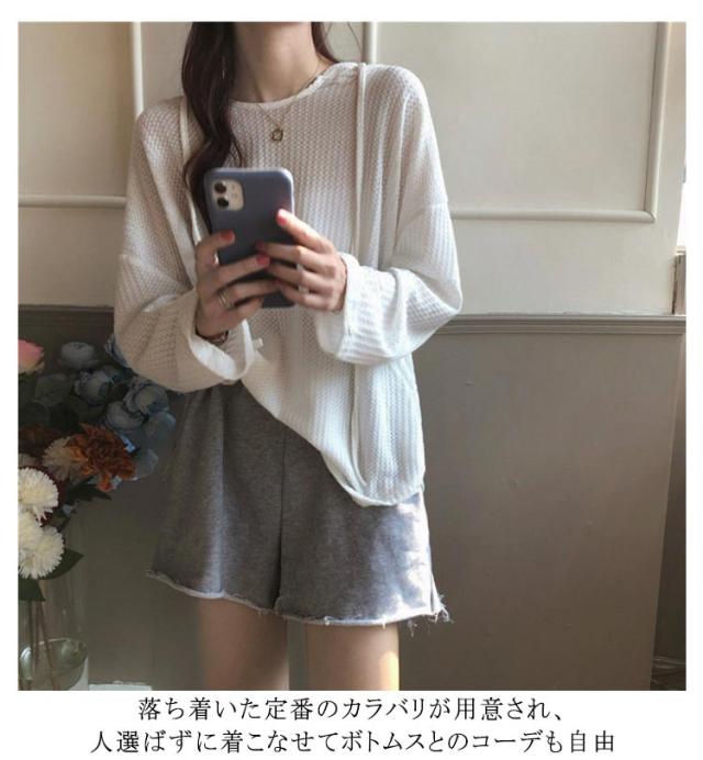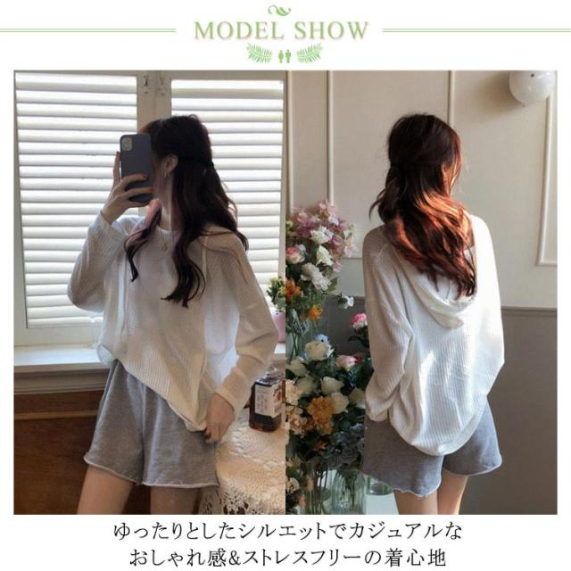 | レディース長袖フード付きTシャツが登場 ゆったりとしたシルエットでカジュアルなおしゃれ感&ストレスフリーの着心地 生地には上品な凹凸模様が施され、とてもユニックなアクセントを付けた キュートなフード付きデザインも見逃せないおしゃれポイント、そして機能性もアップ 落ち着いた定番のカラバリが用意され、人選ばずに着こなせてボトムスとのコーデも自由 | |