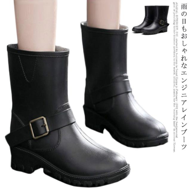 レインブーツ レディース ショート エンジニア ブーツ 完全防水 ショートブーツ 長靴 オシャレ 24.5 25 雨靴 エンジニアブーツ ブラック 黒 靴 梅雨 レインシューズ レディス 雪対策