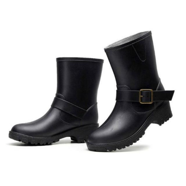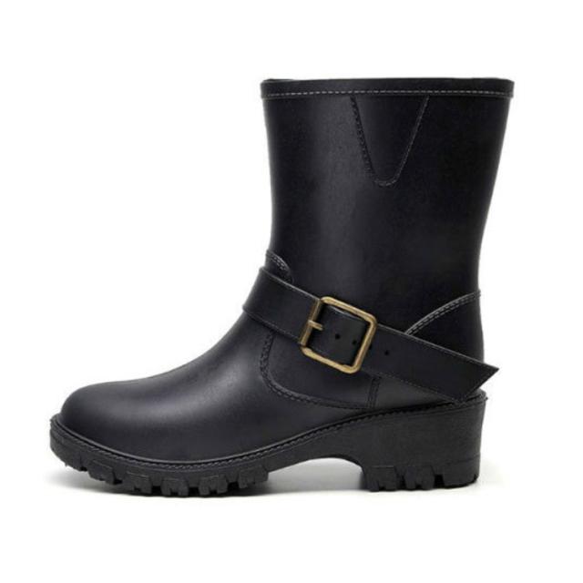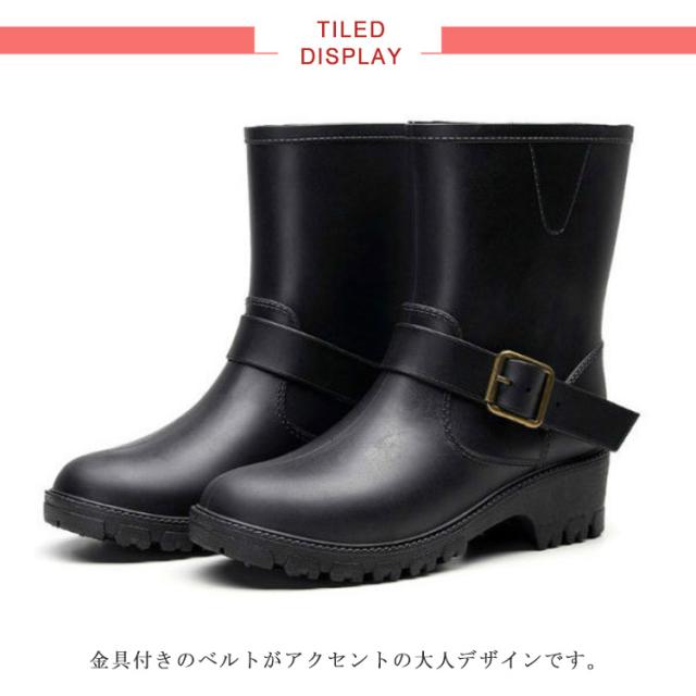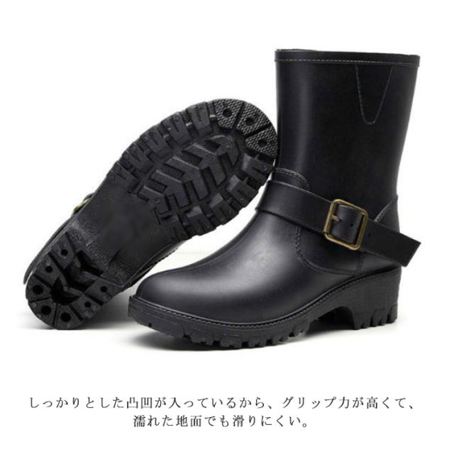 | 雨の日もおしゃれなエンジニアレインブーツ 柔らかい素材で歩きやすい 長すぎず短すぎずちょうどいい 程よい高さのヒール。完全なフラットよりも高さがあるから身体が前傾して踏み出しやすい。 しっかりとした凸凹が入っているから、グリップ力が高くて、濡れた地面でも滑りにくい。 金具付きのベルトがアクセントの大人デザインです。 | |