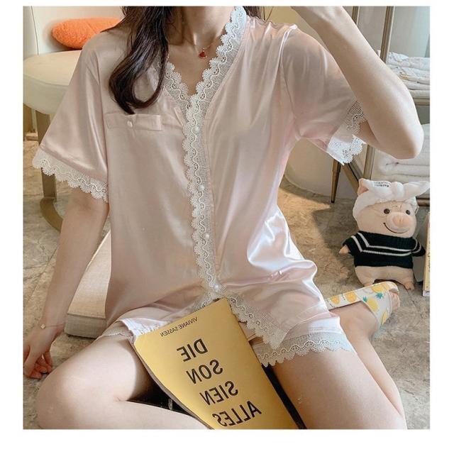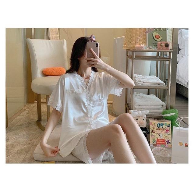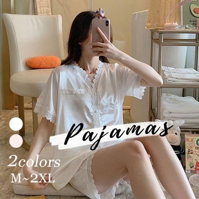 パジャマ ルームウェア レディース 春 夏 半袖 パジャマ 可愛い レーヨン 薄手 パジャマ セットアップ 女性 部屋着 寝巻き ランジェリー オシャレ