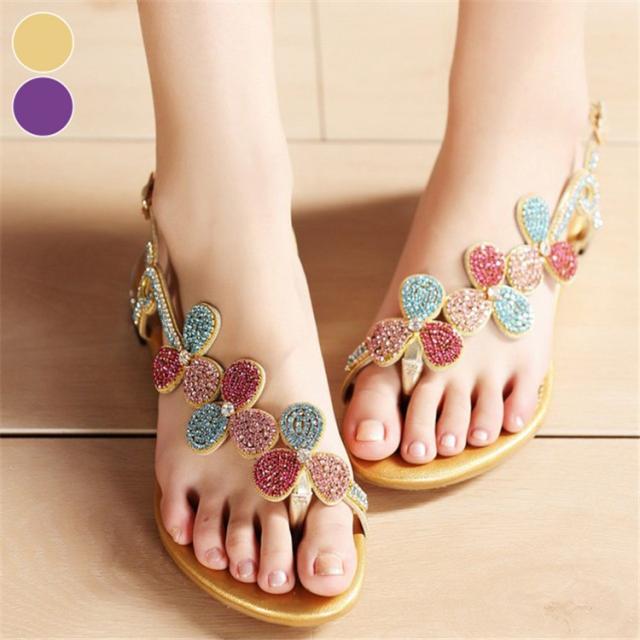 ビジューラインストーン フラット サンダル ビジュー 靴 ぺたんこ ゴールド 結婚式 二次会 お呼ばれ フォーマル レディース パーティ レディース 他と被らない