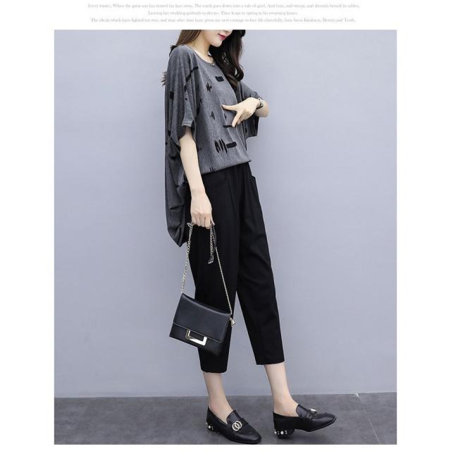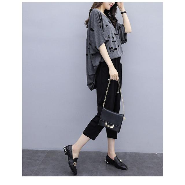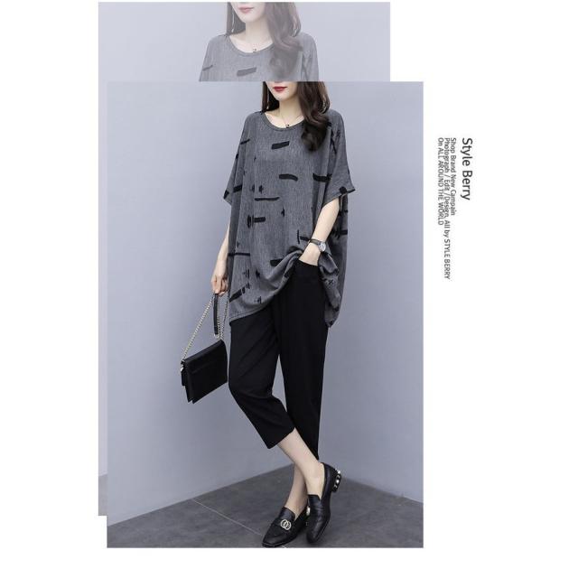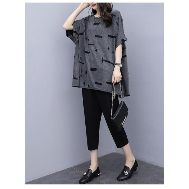 セットアップ レディース 春夏 オシャレセットアップ 半袖Tシャツ七分丈パンツ 大きいサイズ2点セット カジュアル 韓国風 通勤 着痩せ 40代