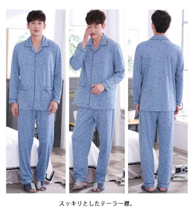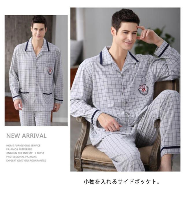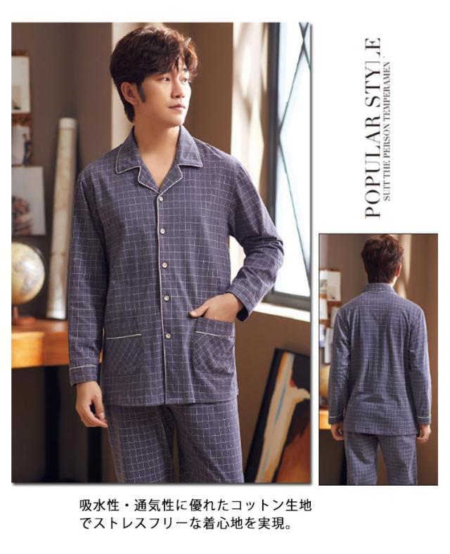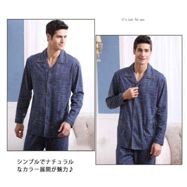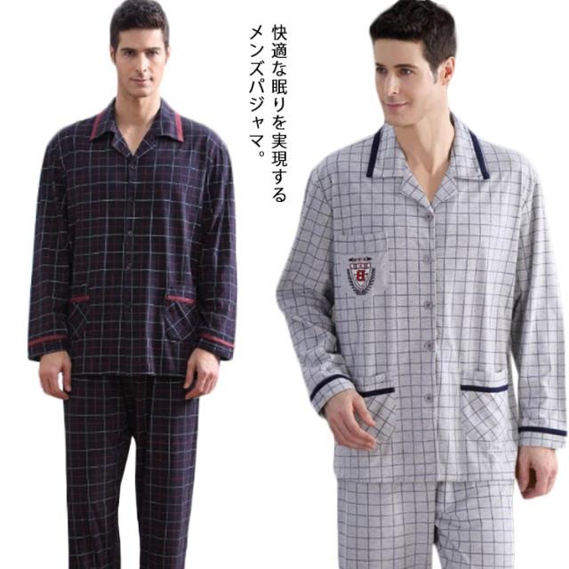 パジャマ 長袖 メンズ 前開き パジャマ ロングパンツ コットン ルームウェア 部屋着 上下セット 紳士 男性 チェック 総柄 入院 パジャマ 寝巻き セットアップ 送料無料 快適 彼氏 お父さん 父の日 誕生日 ギフト プレゼント
