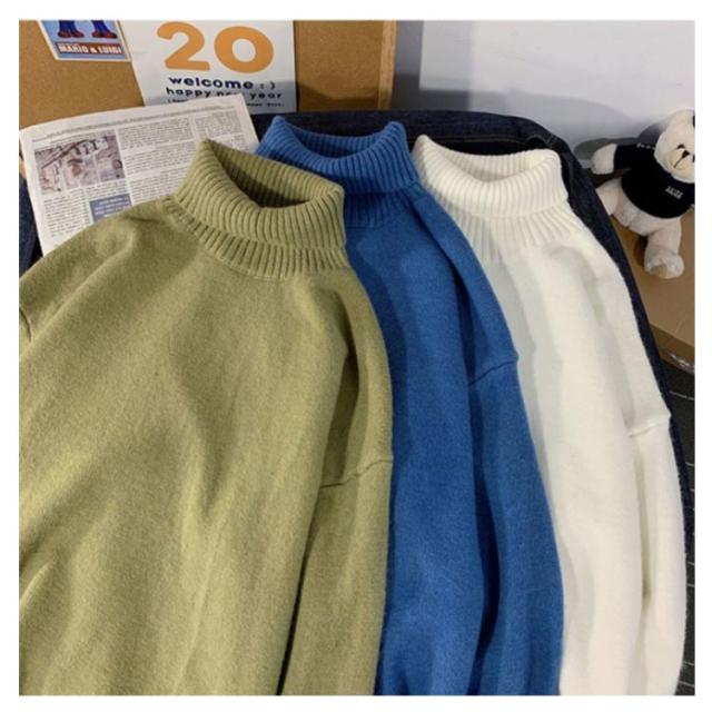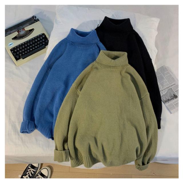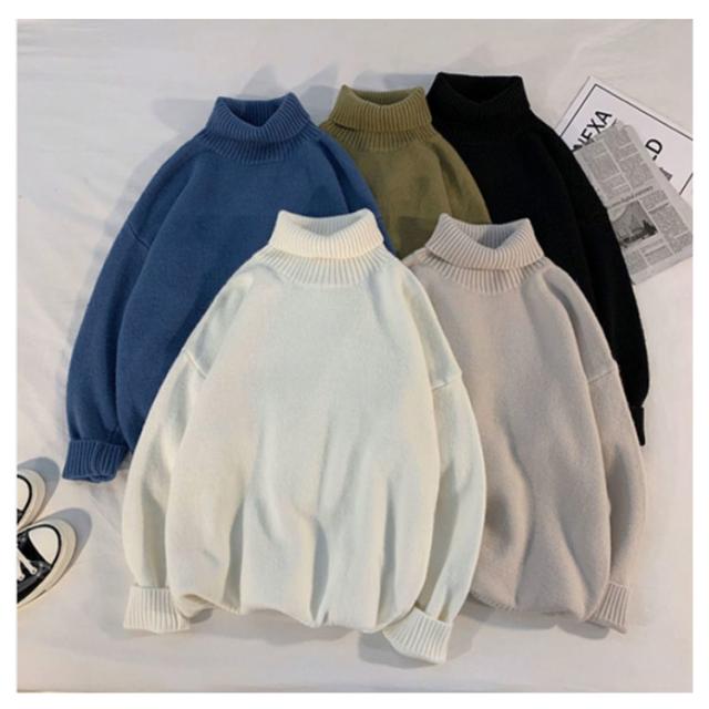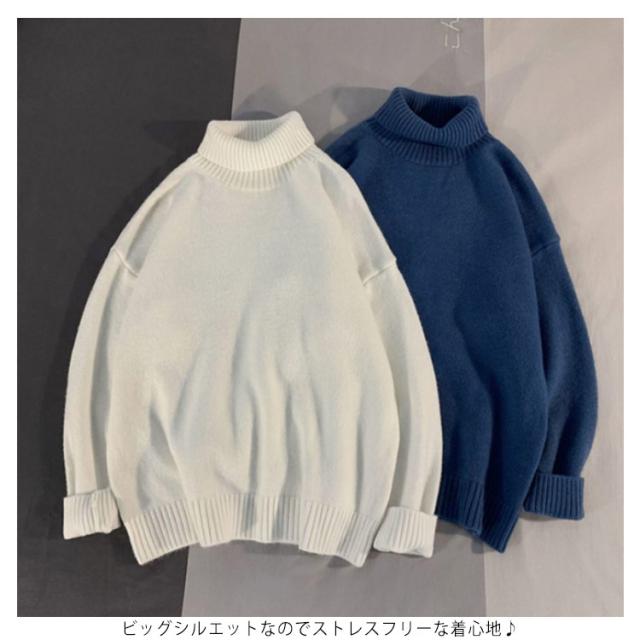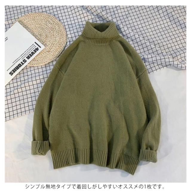 | 男女兼用タートルネックニットセーター♪ チクチク感しないニット素材で着心地抜群です♪。 ビッグシルエットなのでストレスフリーな着心地♪ シンプルでとても暖かみのある素材感が◎ シンプル無地タイプで着回しがしやすいオススメの1枚です。 | |