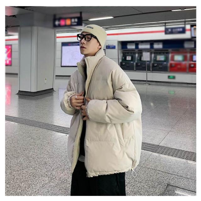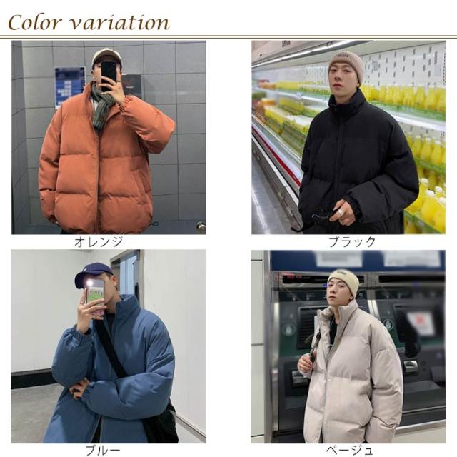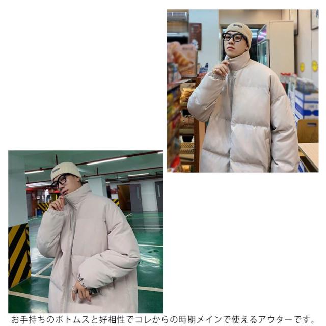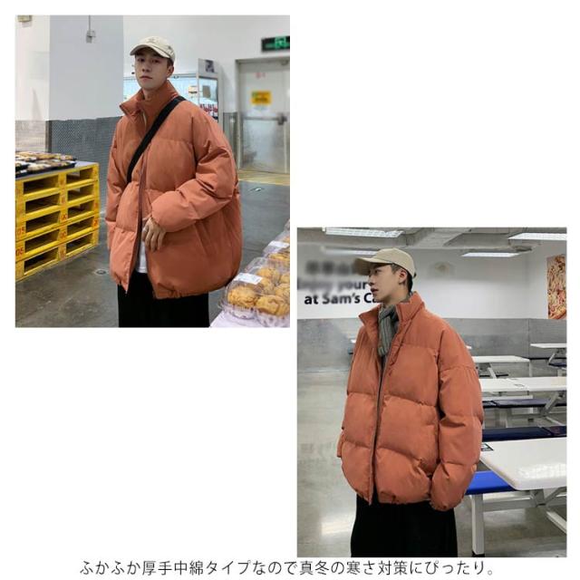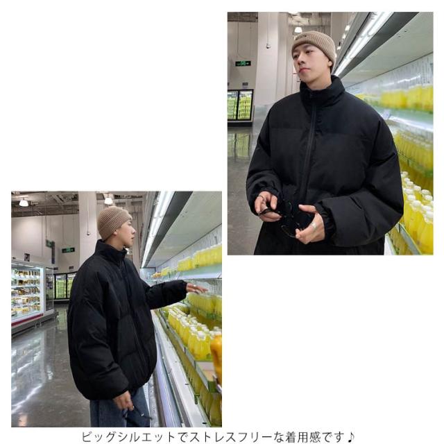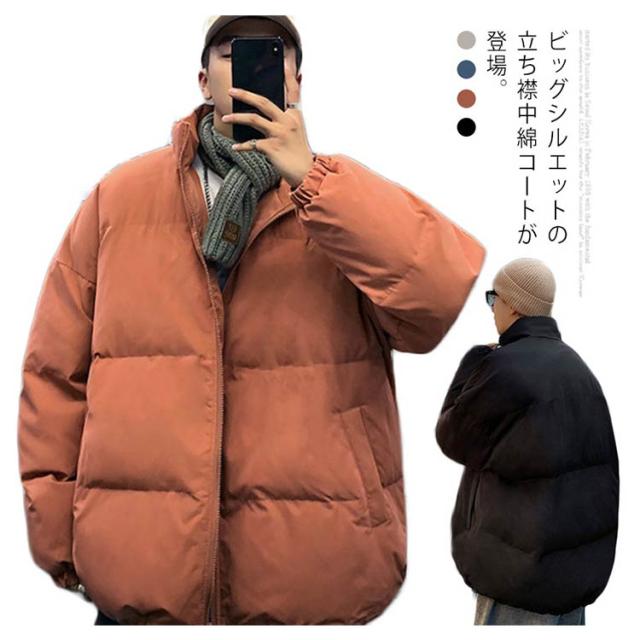 中綿ジャケット メンズ 中綿コート 立ち襟 カジュアルコート 中綿入り コート アウター ビッグシルエット ドロップショルダースリーブ 厚手 暖かい 防寒 秋冬 学生 韓国ファション