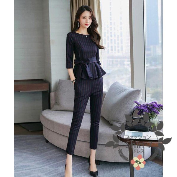 セットアップ セレモニースーツ レディース スーツパンツ ストライプ 大きいサイズ 2点セット 通勤 OL 入学式 卒業式 20代 30代 40代