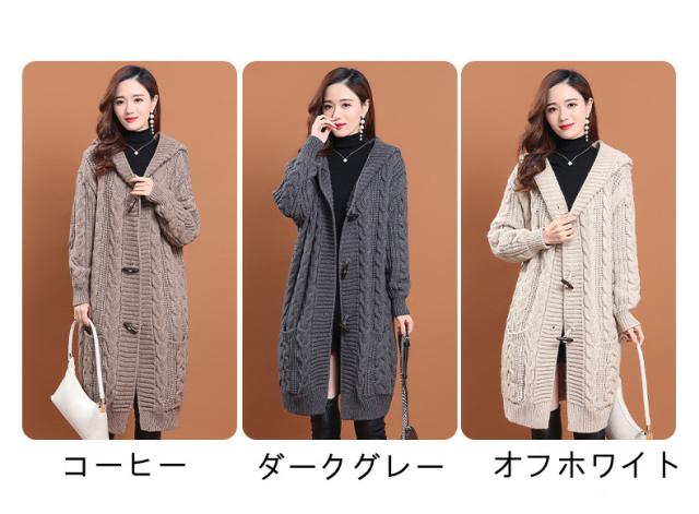 トグルボタン ロングカーディガン カーディガン ケーブル編みカーディガン ニットカーディガン ロング丈 ニットコート フード付き レディース ざっくり ニットアウター 長袖 無地 カジュアル 春秋 ニット ケーブル 立体感 春 秋