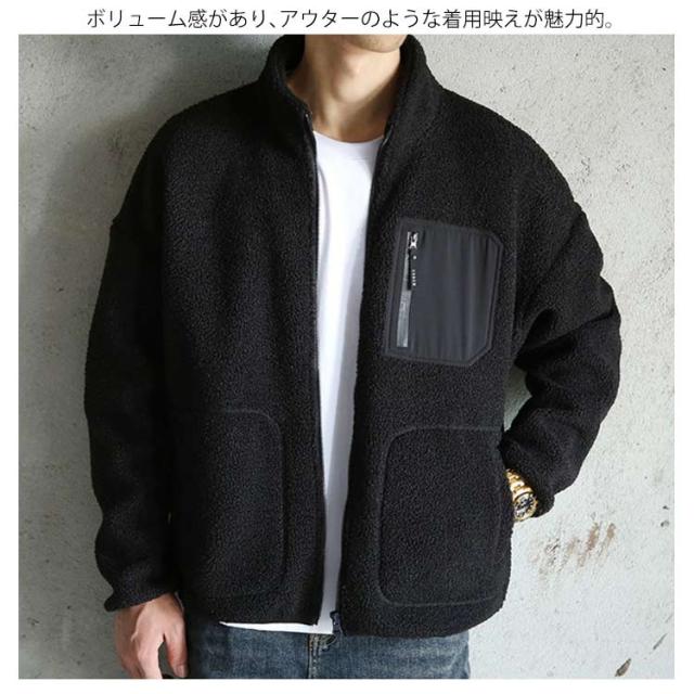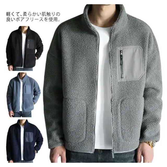 ボアフリースジャケット 裏起毛 メンズ レディース ブルゾン 春 秋 冬 服 防寒 防風 保温 あったか 襟立 大きいサイズ フード無し ジャケット ポケット 韓国 シンプル 大人 無地 ゆったり カジュアル おしゃれ ユニセックス M L 2L 3L