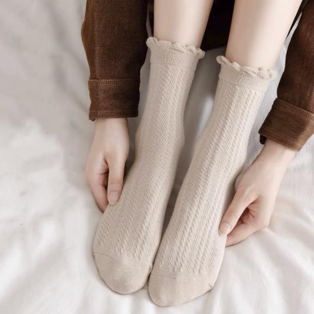 靴下 レディース おしゃれ ソックス 靴下 セット レディース くつ下 女の子 可愛い コットン 綿 春 秋 冬 無地 ルーズソックス 黒 白 グレー ハイソックス フリル 編み 送料無料