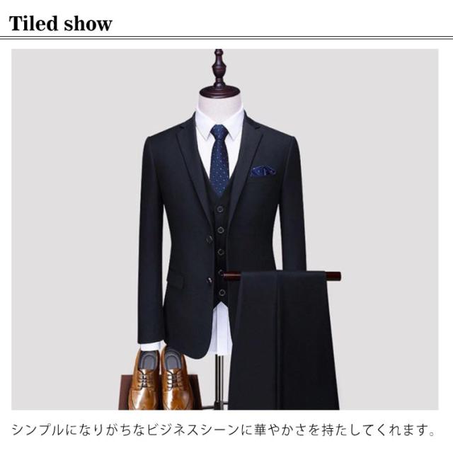 【送料無料】メンズスーツ スーツ 3点セット ベスト付き 2つボタン スリーピーススーツ スリムスーツ 春夏 秋冬 男性 ビジネス フォーマル 結婚式 面接 オシャレ セール SALE 小さめ 大きいサイズ S M L 2L 3L 4L 5L ブラック ネイビー グレー