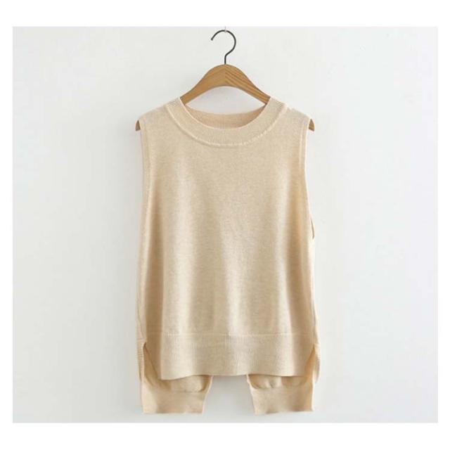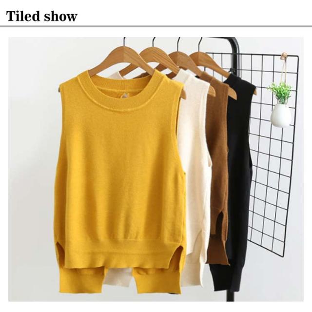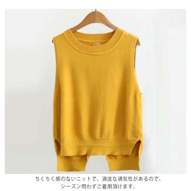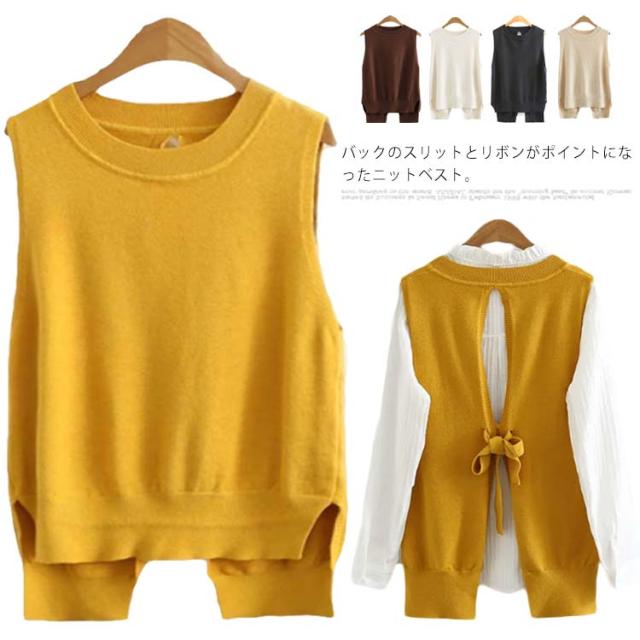 ベスト レディース ニットベスト 後ろ スリット Vネック リボン 全5色 ショット丈 前後差 レイヤード コーデ ノースリーブ トップス 普段着 韓国 シンプル 無地 春 秋 冬 オフィス 黒 ブラック ベージュ おしゃれ 大人 可愛い M-4L (送料無料)