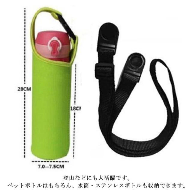 | 全3サイズ・8色ストラップ付き水筒カバー登場! 安心して毎日お使い頂ける、徹底した品質管理。 保冷保温素材だからオールシーズン活躍! シンプルでおしゃれな無地デザイン、お気に入りのマイボトルをずっときれいに 耐久性と耐熱性のある素材でぴったりフィットの水筒カバーでしっかりホールド。水筒をキズから守ります。 季節に合わせて飲みたい飲み物を持ち運べます。 専用ストラップ付で、カバン、ウエストなどにぶら下げられて便利! 登山などにも大活躍です。 ペットボトルはもちろん、水筒・ステンレスボトルも収納できます。 ネオプレン素材だから保温性も抜群。 表面のラミネート生地と裏地の撥水生地の間に、保温・保冷シートを挟んで丁寧に縫製した3層構造です。 お子さまが少々やんちゃに扱っても壊れにくく設計しました。 | |