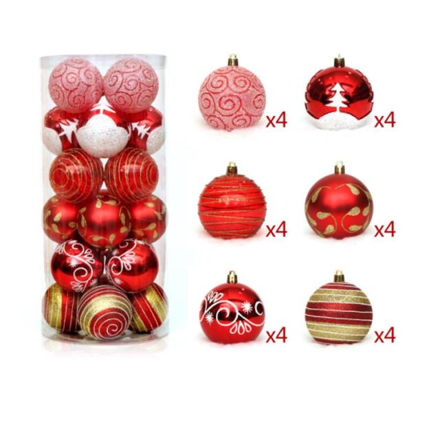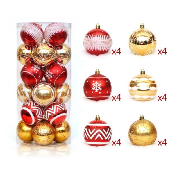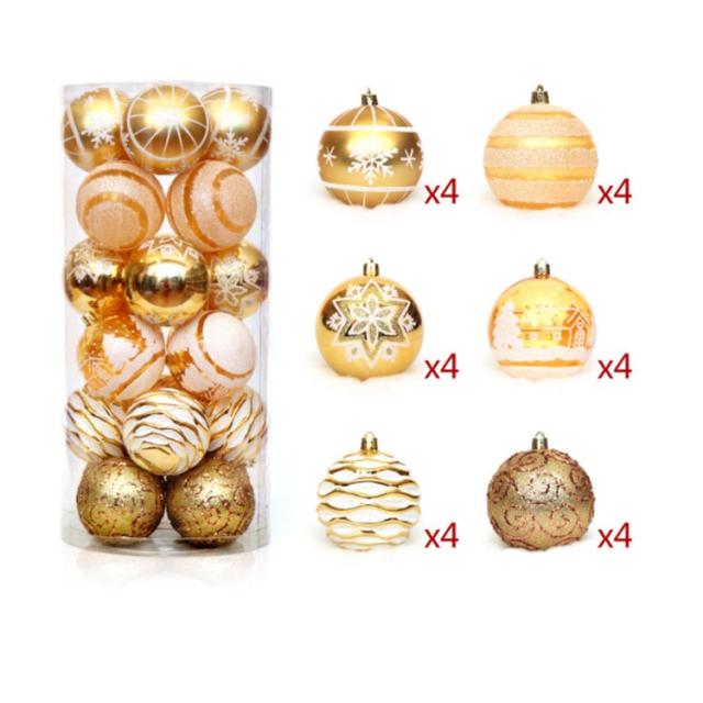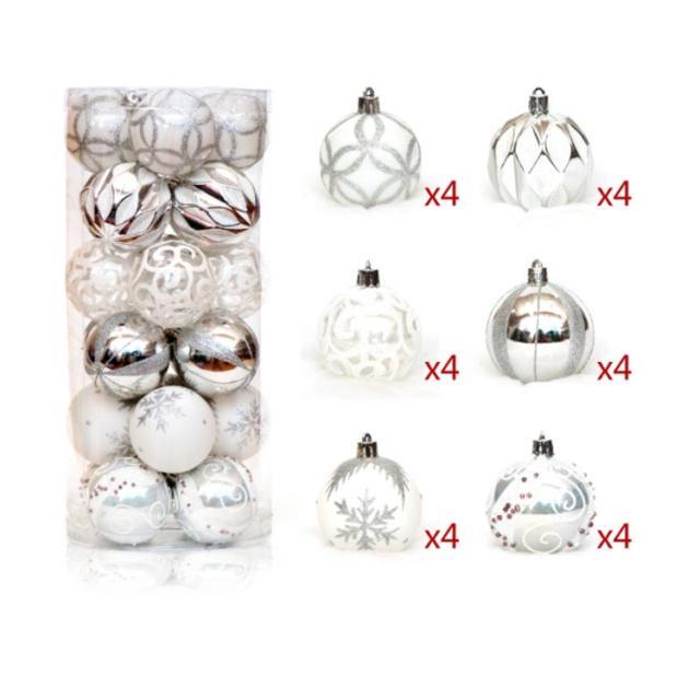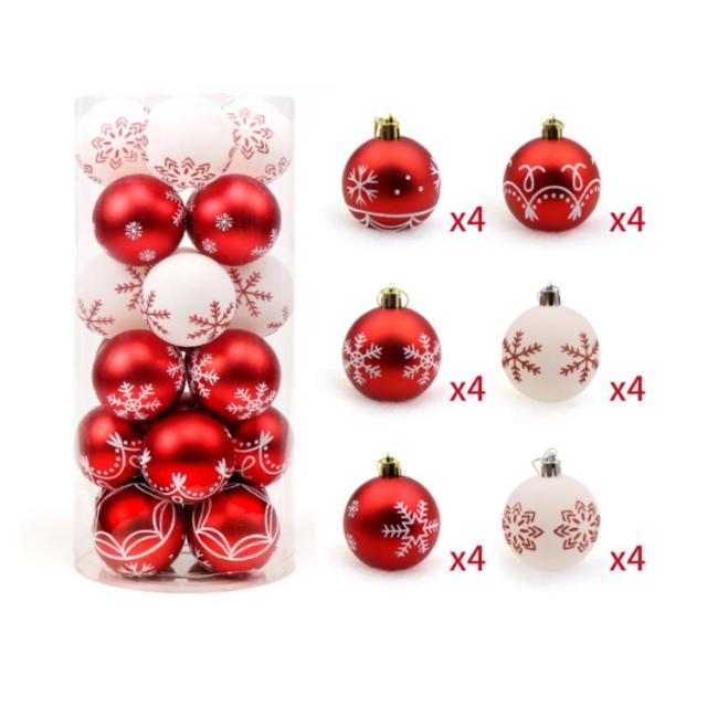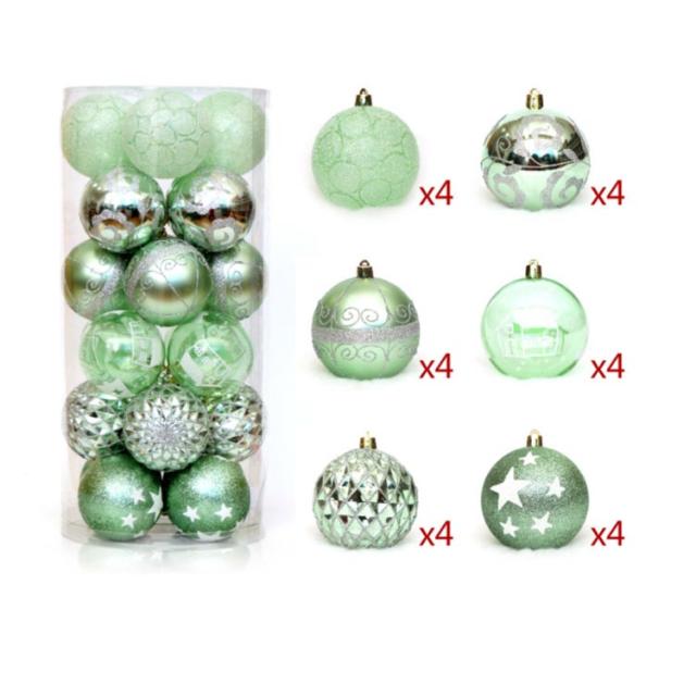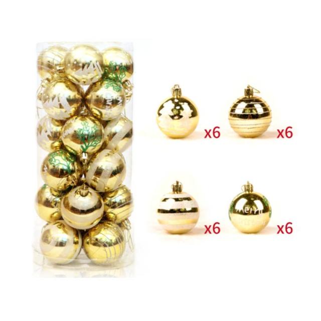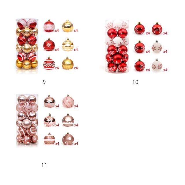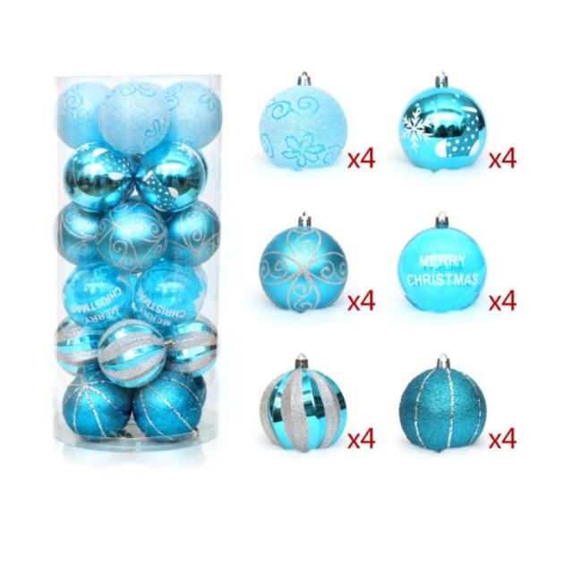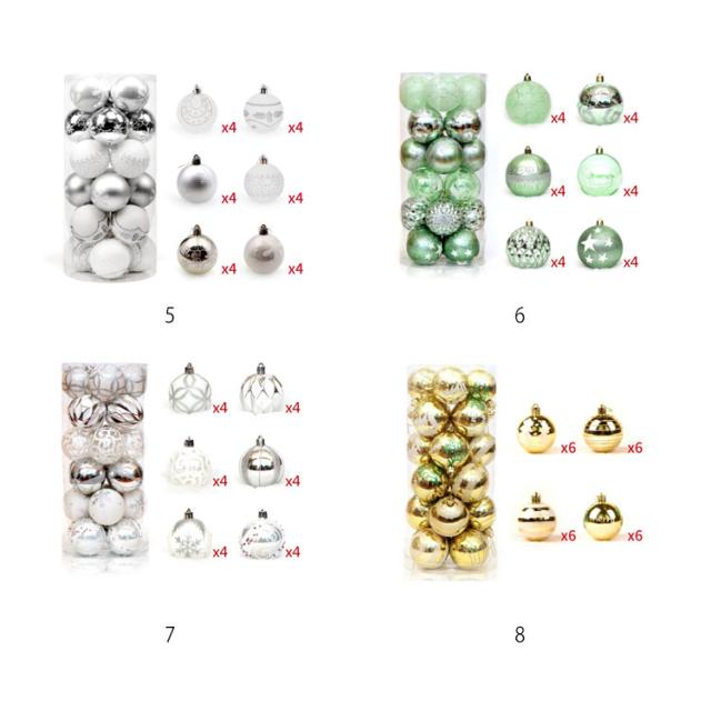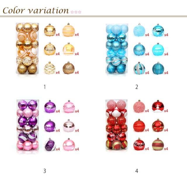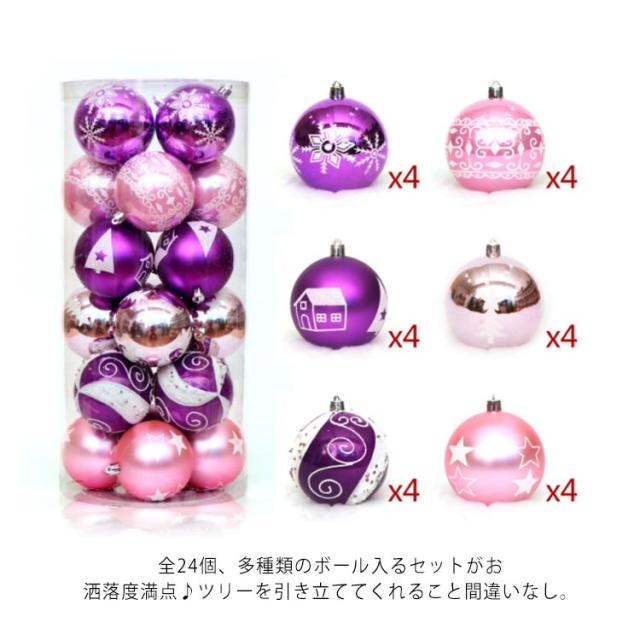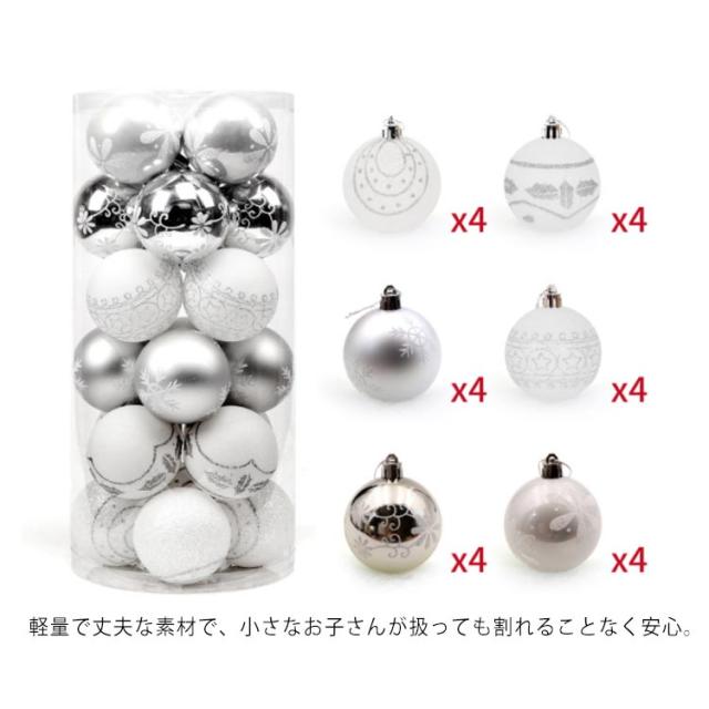 24個入り クリスマス ボール オーナメント セット 柄 キラキラ 装飾 ツリー飾り デコレーション プレゼント 雪結晶 幾何学模様