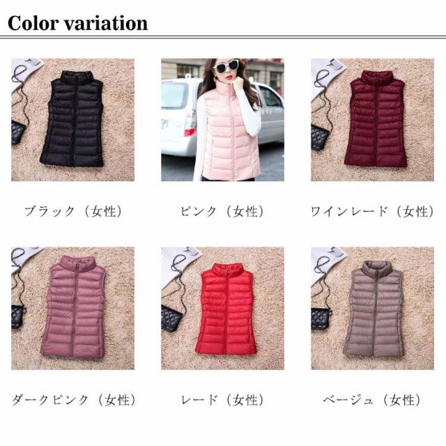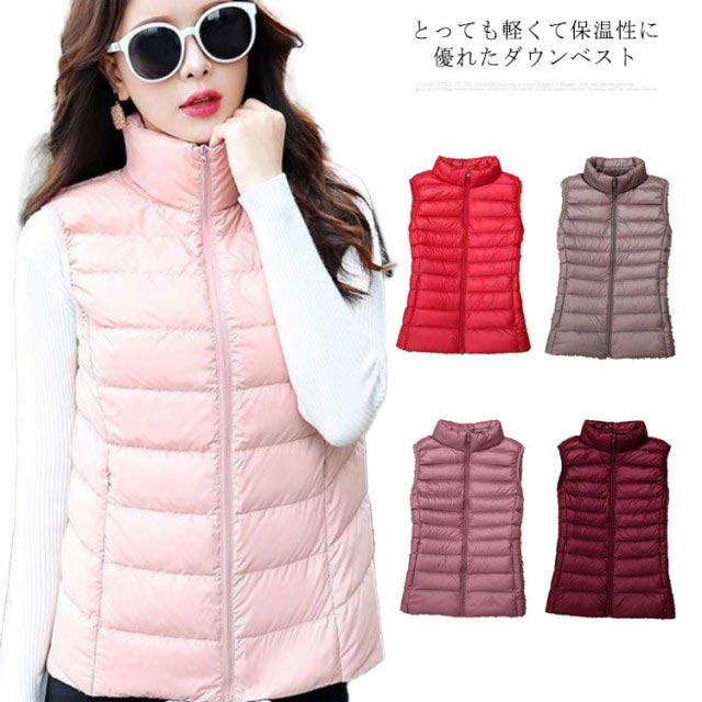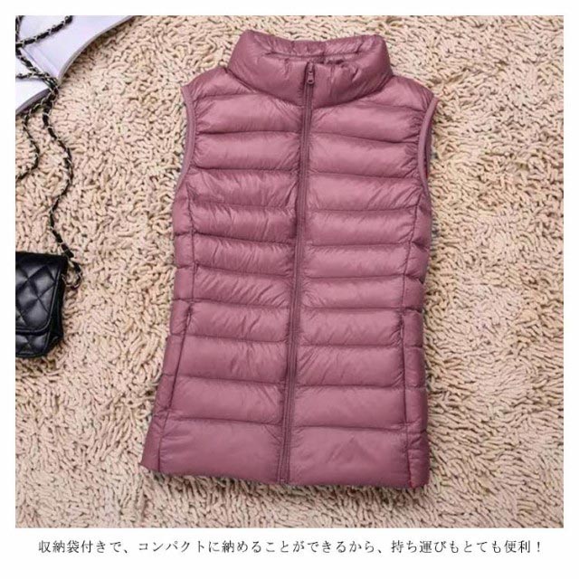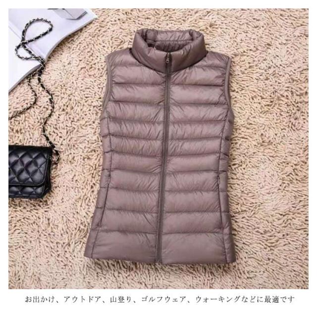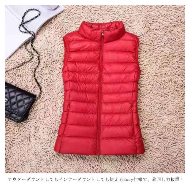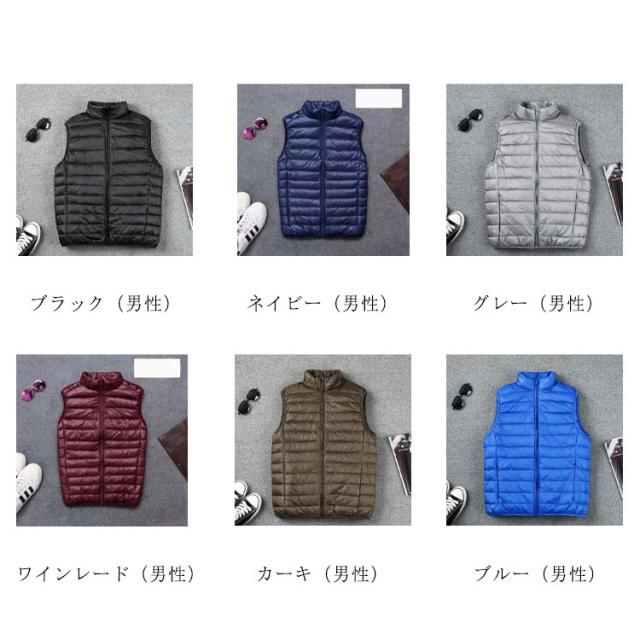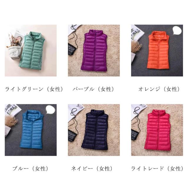 ライトダウンベスト レディース メンズ ダウンベスト ショート アウター トップス インナーダウン ライトダウン ダウン ジャケット ベスト 無地 軽量 ファスナー式 ダウン 男女兼用 防寒 収納袋付き