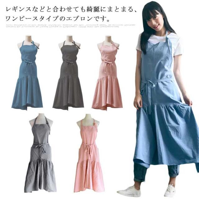 【送料無料】エプロン ワンピースエプロン ロング チュニック レディース 薄手 フリル 保育士 ふんわり ドレス ポケット シンプル 無地 綿麻 北欧 花屋 飲食店 おうち時間 アウトドア コーデ かわいい おしゃれ