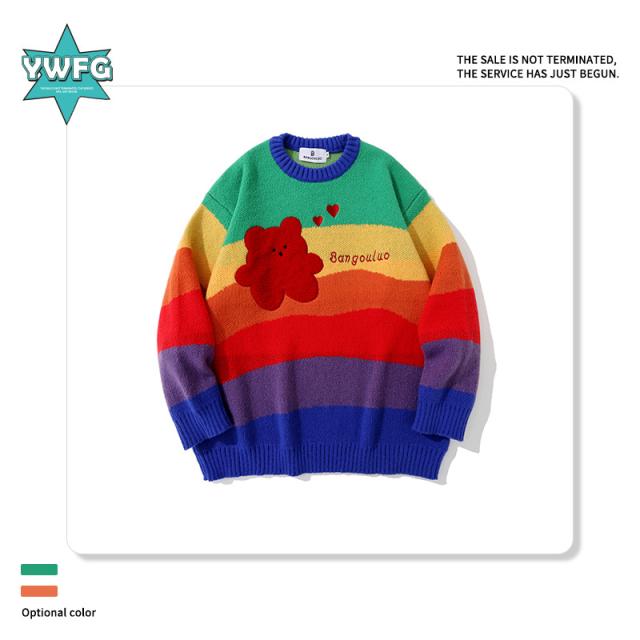 ニットセーター ニット セーター トップス 虹 レインボー カップル レディース メンズ 秋冬 カジュアル オシャレ 韓国風 ゆったり かわいい ファッション ギフト プレゼント 結婚祝い 記念日