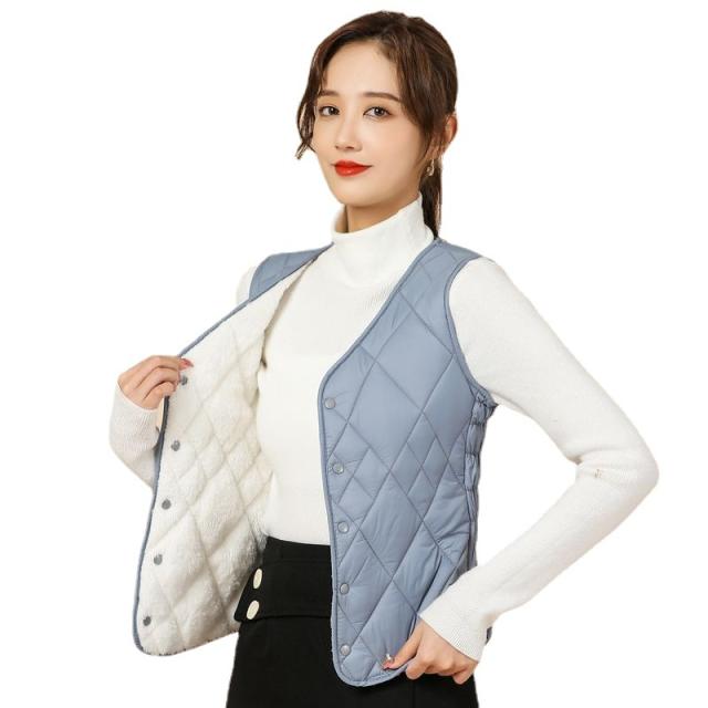 ベスト チョッキ ダウンベスト インナーベスト Vネック 前開き レディース 婦人服 裏ボア 防寒 あったか 暖かい 軽量 母の日 秋冬