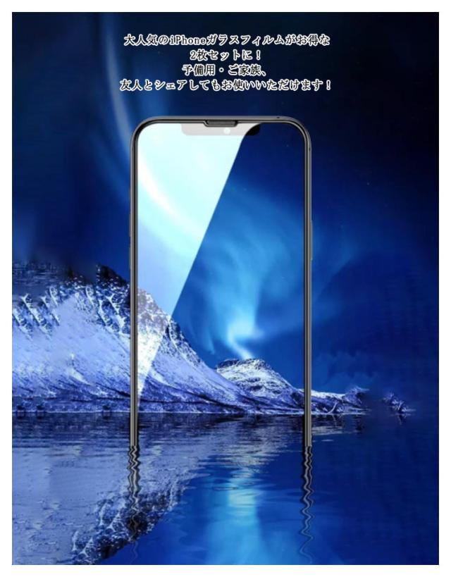 | iPhoneをしっかり全面保護! 【超お得な2枚セット】 大人気のiPhoneガラスフィルムがお得な2枚セットに! 予備用・ご家族、友人とシェアしてもお使いいただけます! 【ブルーライトカット機能】 長時間ディスプレイを見ていても目が疲れにくい。色素沈着を防止、ブルーライトから目を守る、効果的に近視を予防できます。 ガラス縁をラウンド加工することにより滑らかな手触りを実現。 【快適なタッチ感】 極薄の厚さでタッチスクリーンの反応を損なわず、 表面のオイル加工により、快適な操作が可能。 【透過率96%】 透過率96%超えのフィルムで、液晶画面の鮮明度を損なうことなく画面本来の美しさをそのまま表現。 【指紋防止、飛散防止】 撥油コーティング加工されているため、耐油性に優れ、指紋がつきにくく、付着した汚れなどは簡単に拭きとれます。 万が一落下で割れてもガラスが飛び散ることはないです。 【気泡防止】 アルコールパッド・クリーニングクロス・静電気ホコリ取りシートを使用することにより 気泡が入りにくく、誰でも簡単に貼り付けることができます。 | |