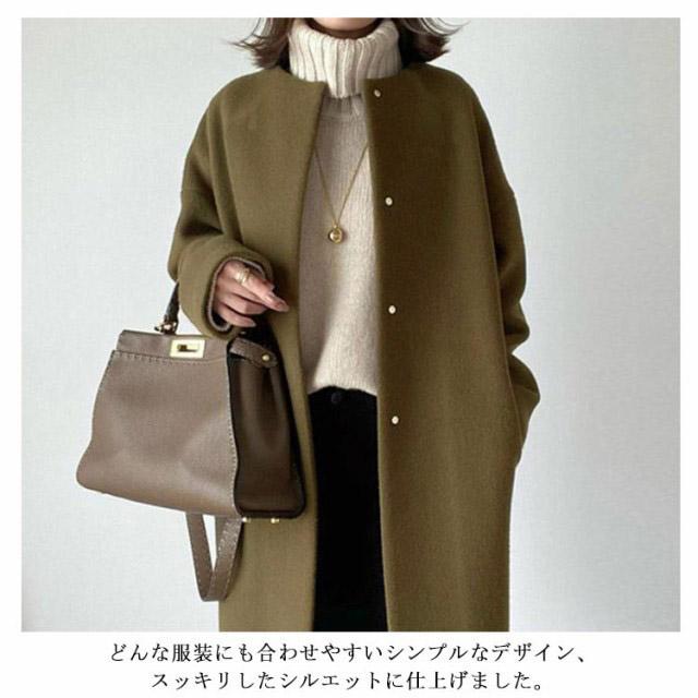 ノーカラーコート ロングコート 厚手 チェスターコート レディース アウター 秋冬 通勤 暖かい 冠婚葬祭 フォーマル 韓国ファッション 卒業式 入学式