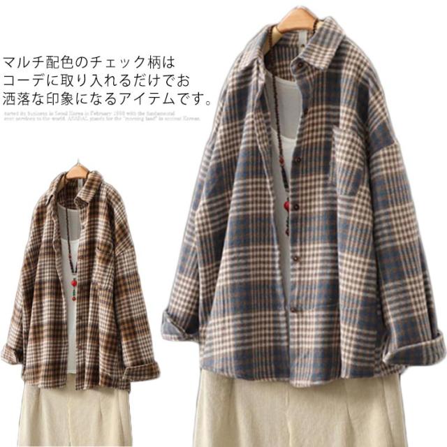 【送料無料】シャツ ブラウス 長袖 レディース 彼シャツ アウター トップス チェック柄 厚手 着?せ 体型カバー 大きめ ゆったり 韓国 羽織り ビックサイズ マルチカラー ドロップショルダー オーバーサイズ 春 秋 冬 秋冬 おしゃれ XXS〜4L